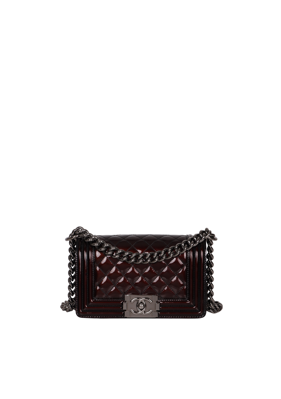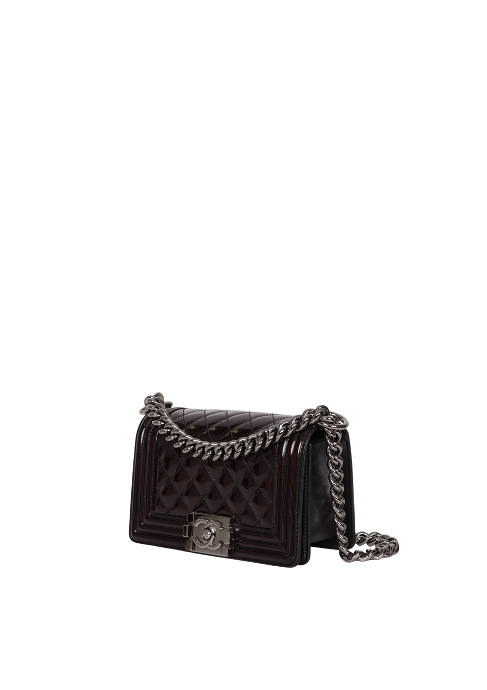 Descrição do Material: Couro calfskin marrom com acabamento matelassê e verniz