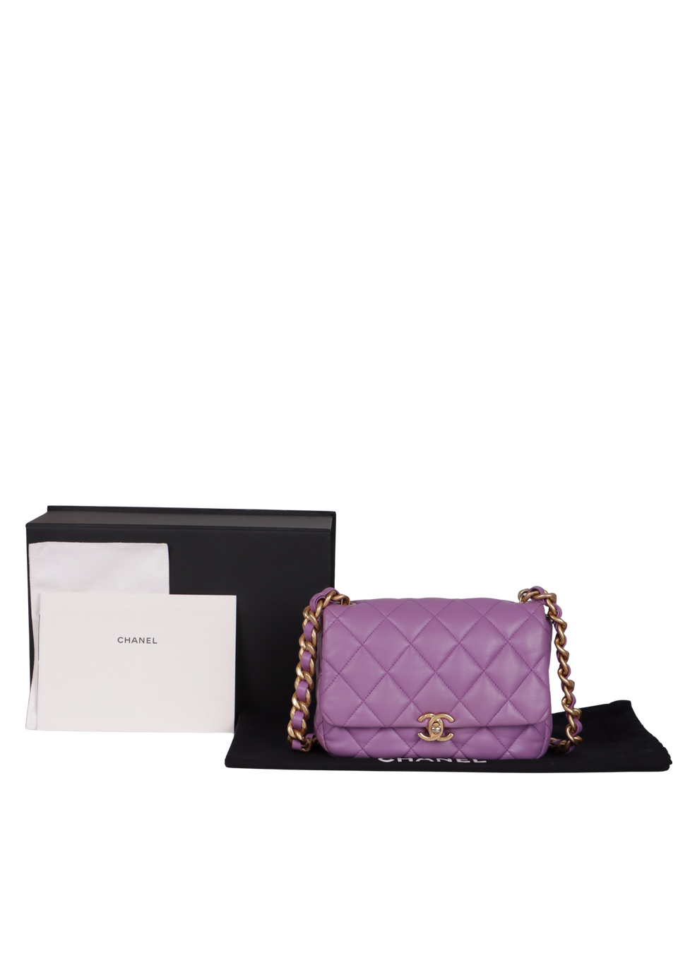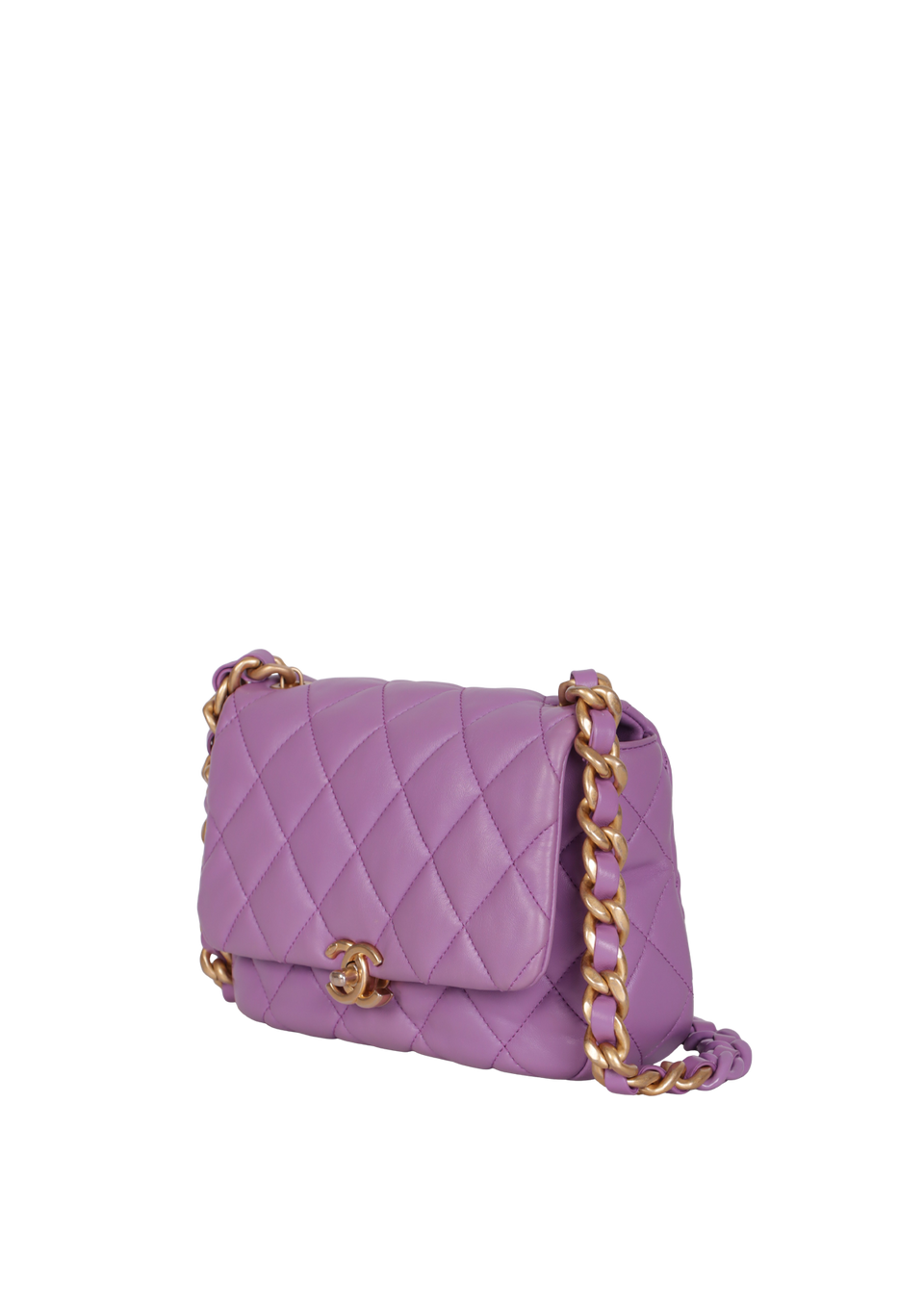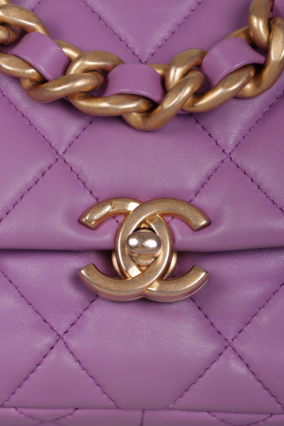 Descrição do Material: Couro calfskin roxo com acabamento matelassê