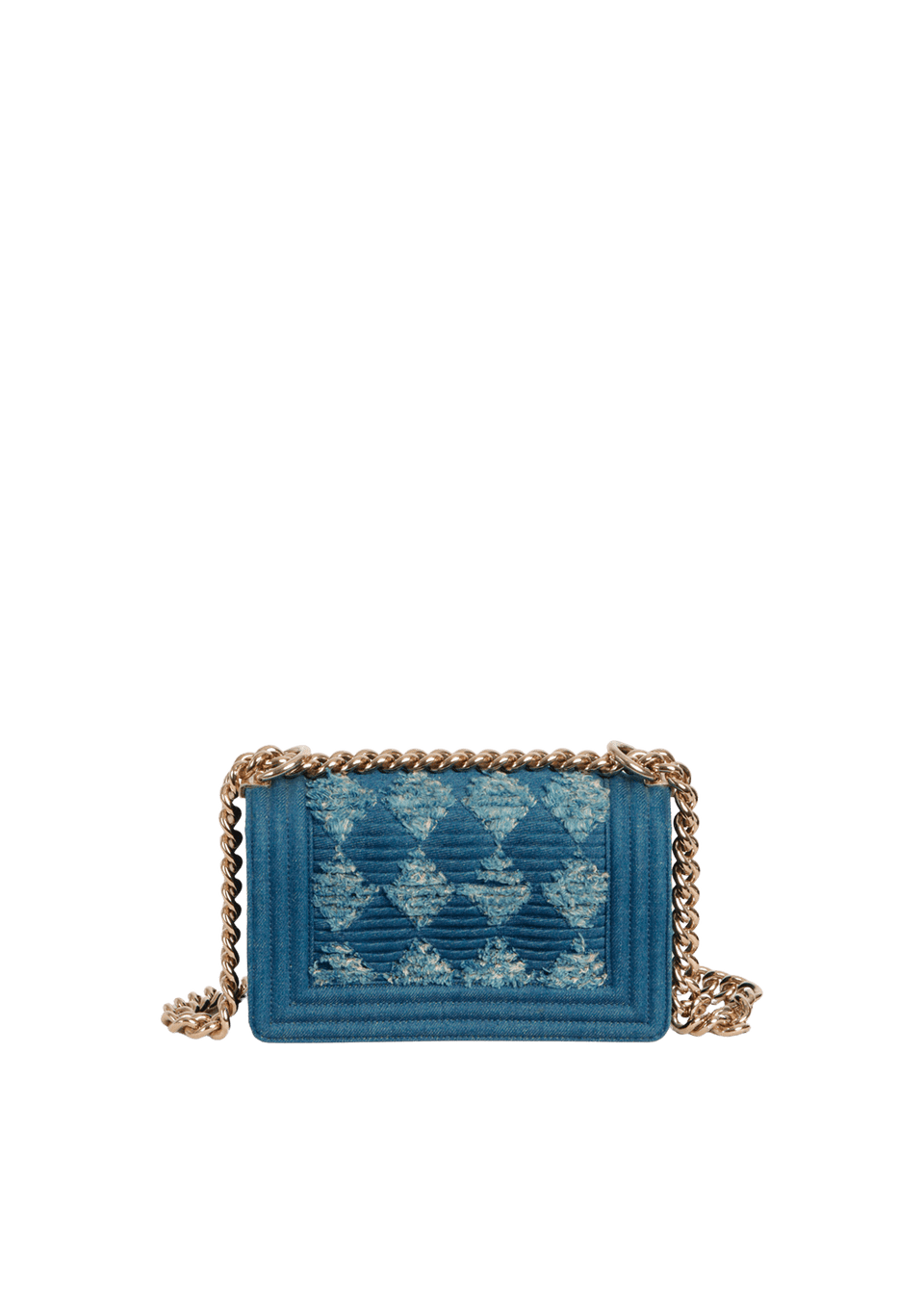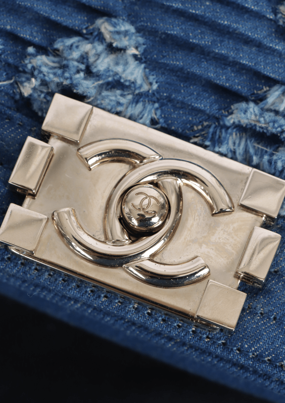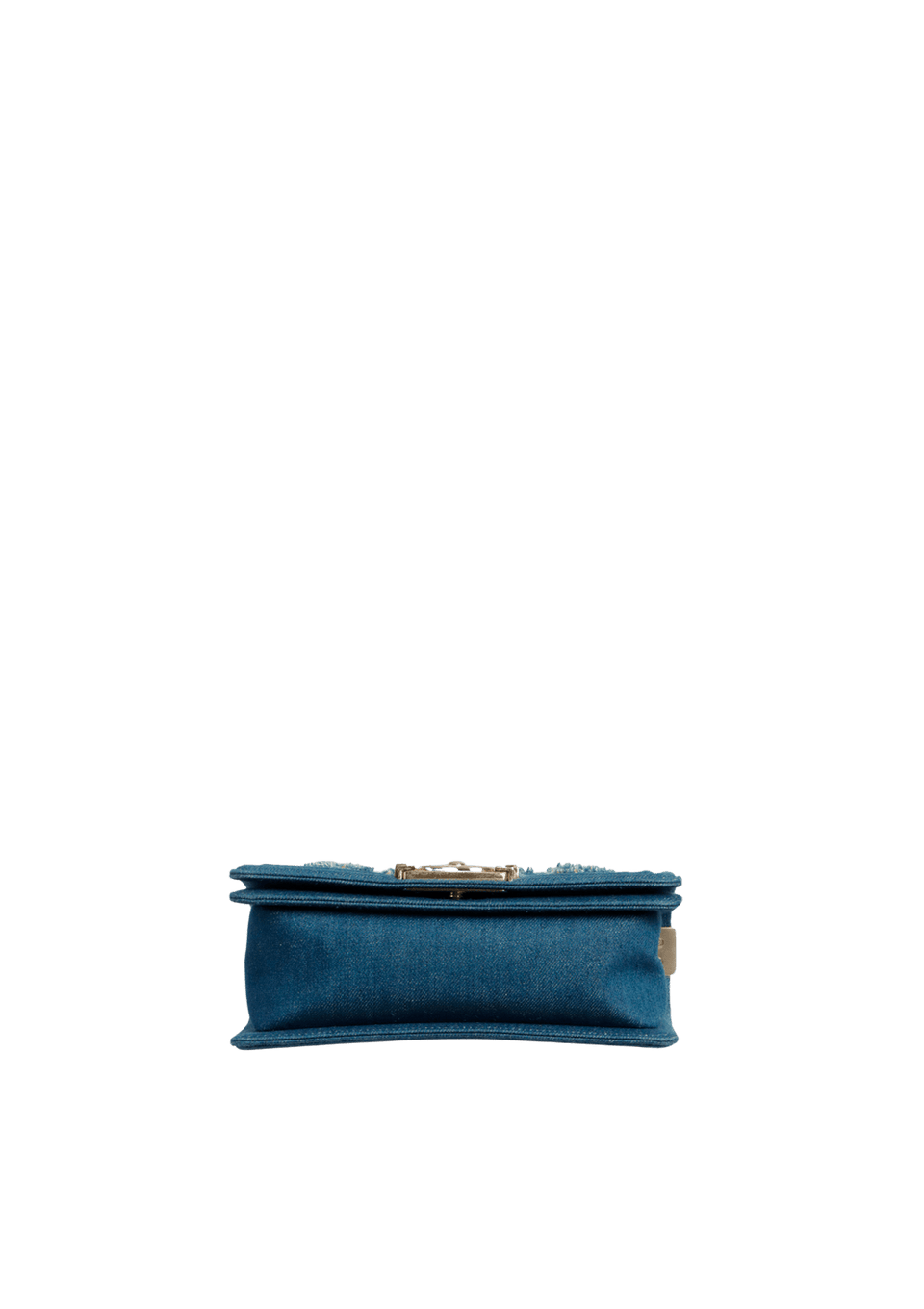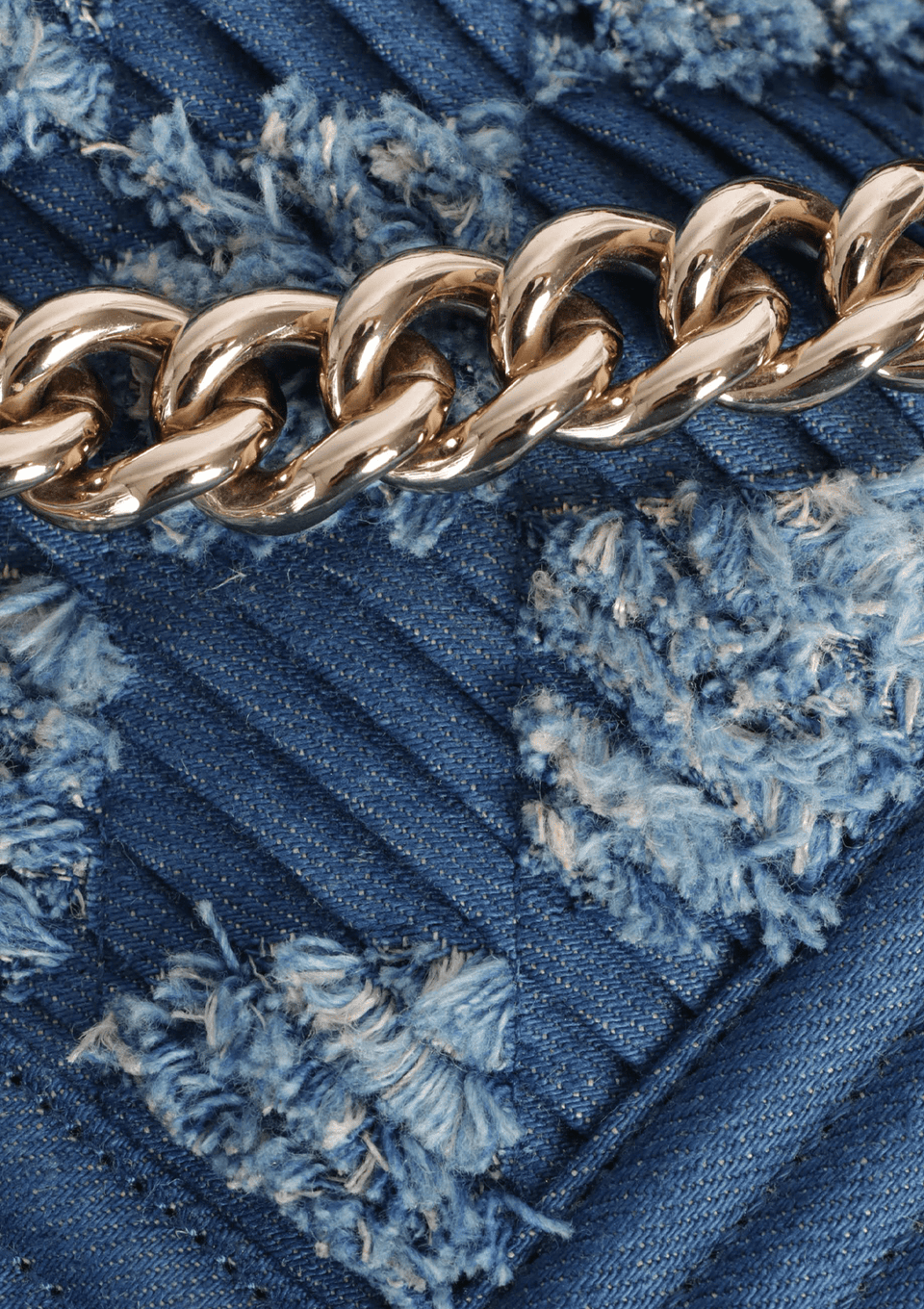 Condição: Muito bom, com aparência de seminovo. Apresenta levíssimas marcas de uso e oxidações nas ferragens, especialmente na do fechamento frontal e mínima deformaçāo na tira de couro da alça. Os puídos e estonados pelo denim sāo características do design original.