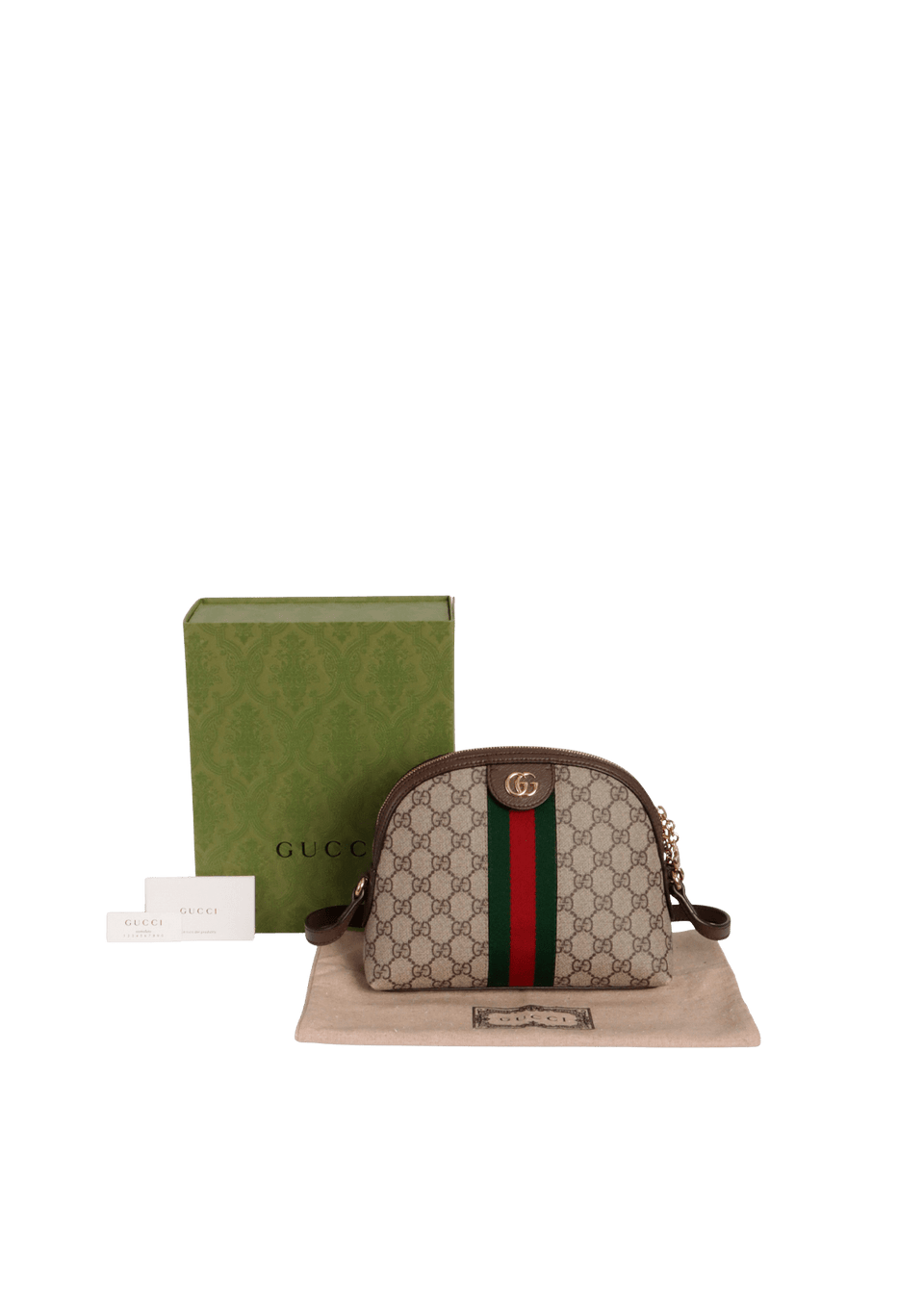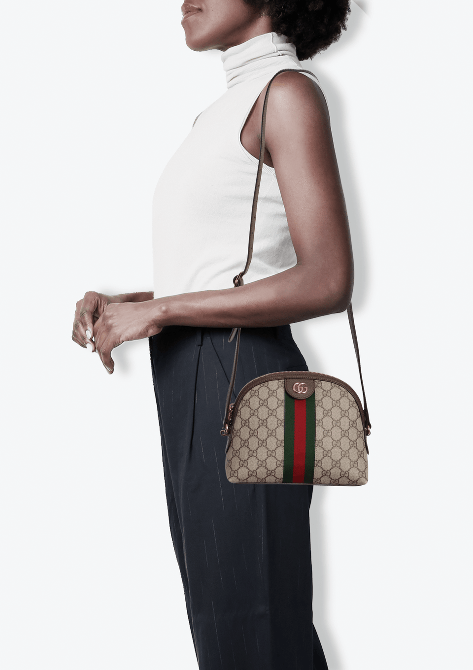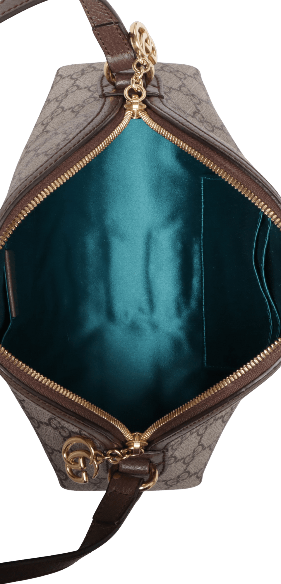 - Canvas GG Supreme com detalhes em couro calfskin marrom e faixa Web;