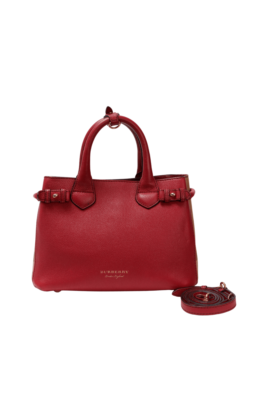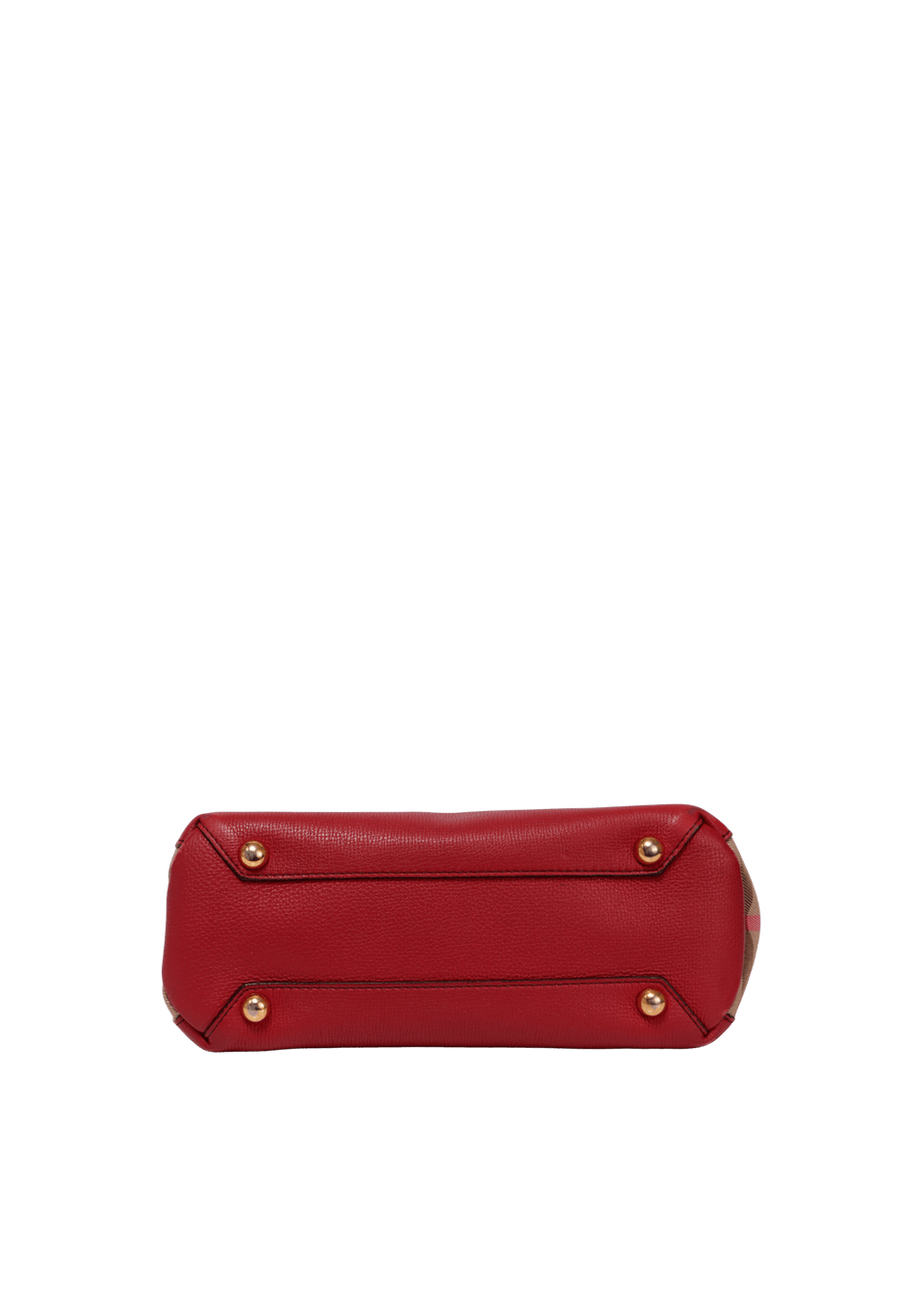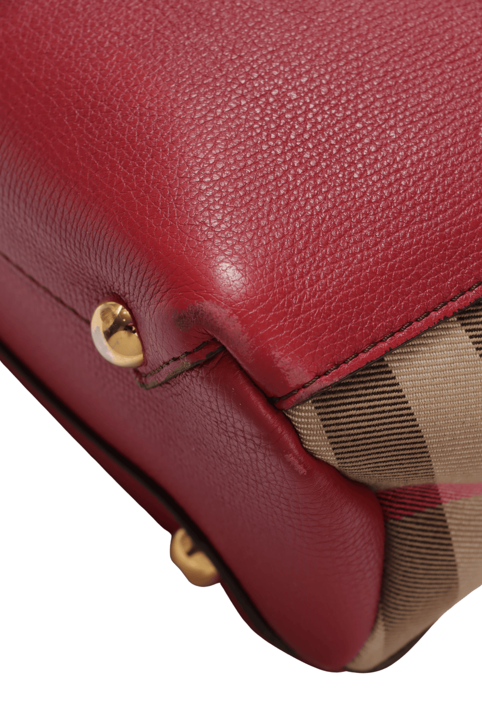 Descrição do Material: Couro calfskin bordô com detalhes em canvas House Check