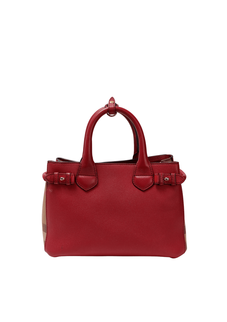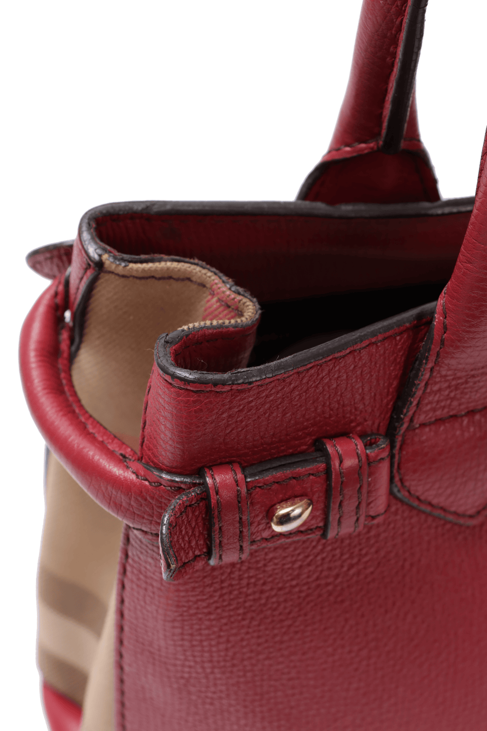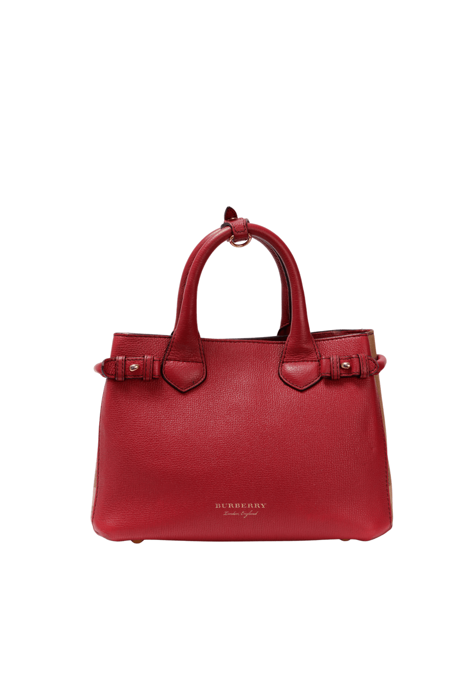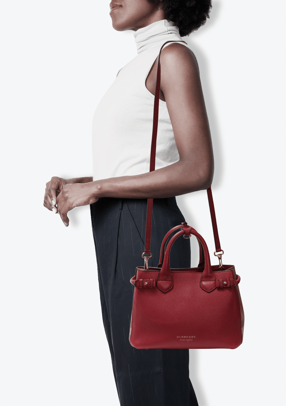 Descrição do Material: Couro calfskin bordô com detalhes em canvas House Check
