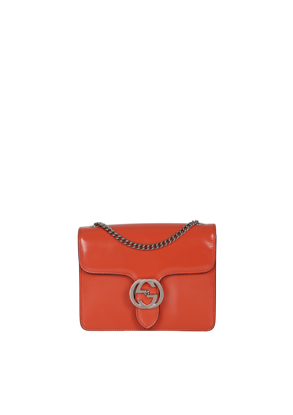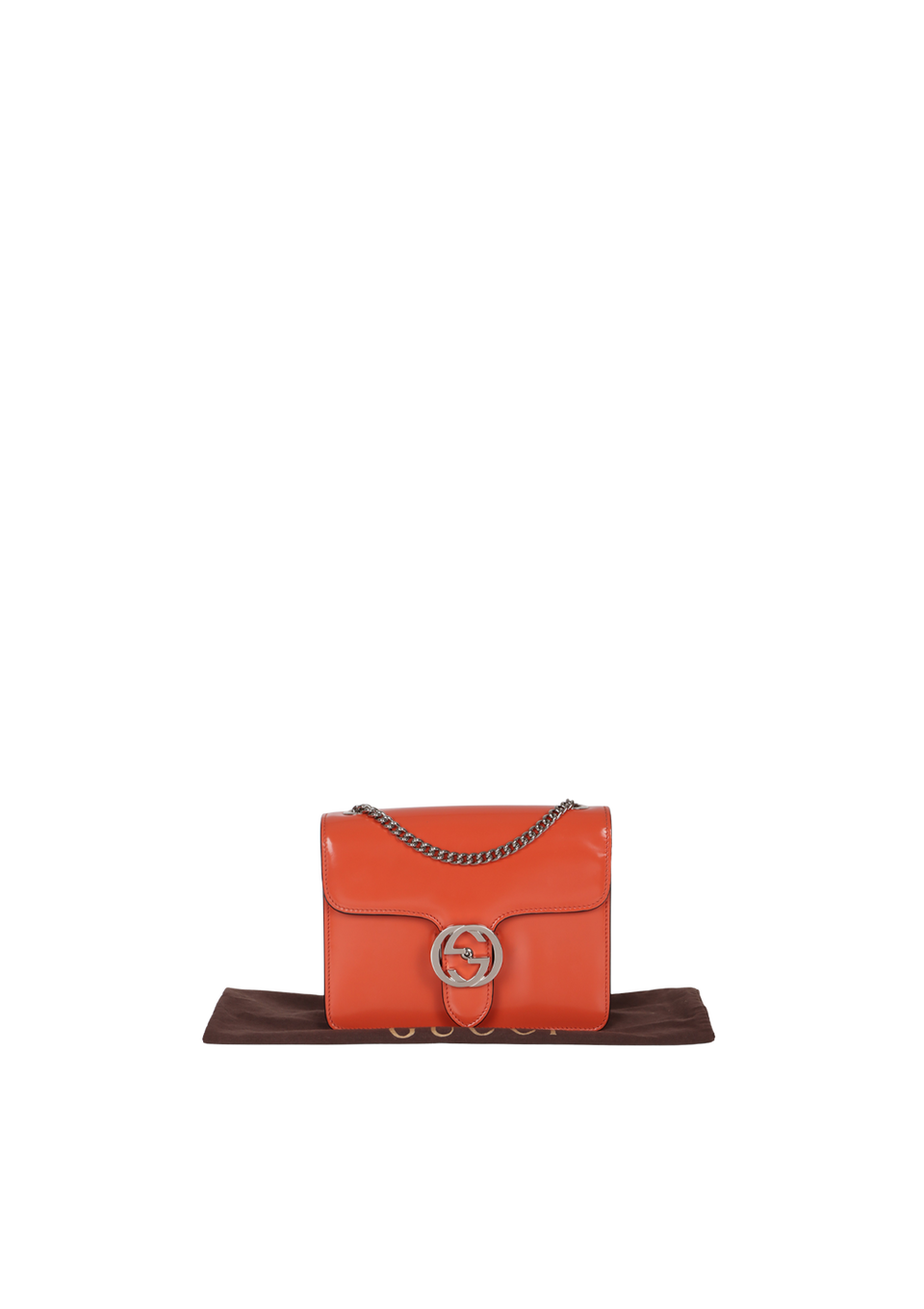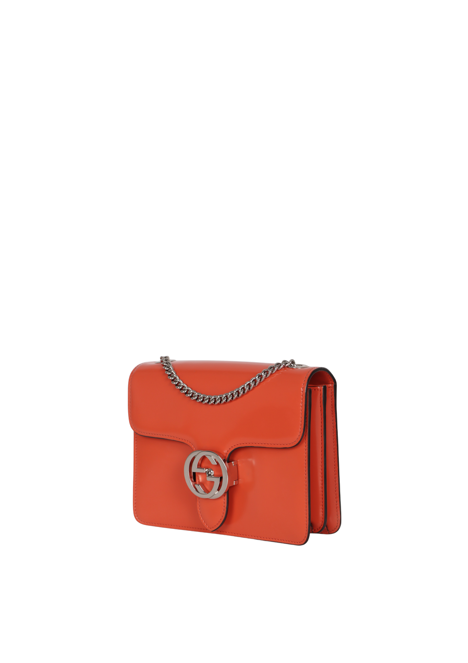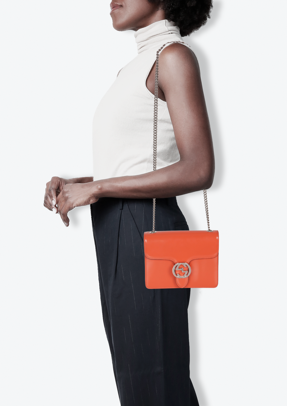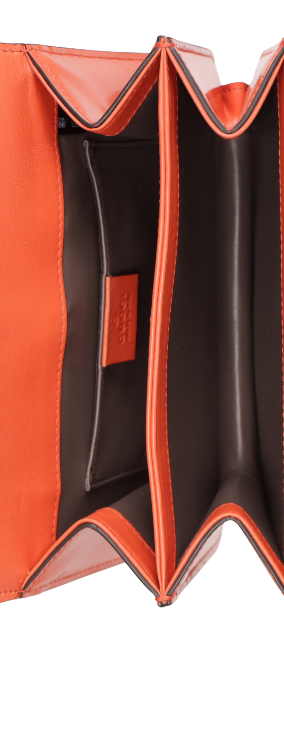 Descrição do Material: Couro calfskin laranja com acabamento envernizado