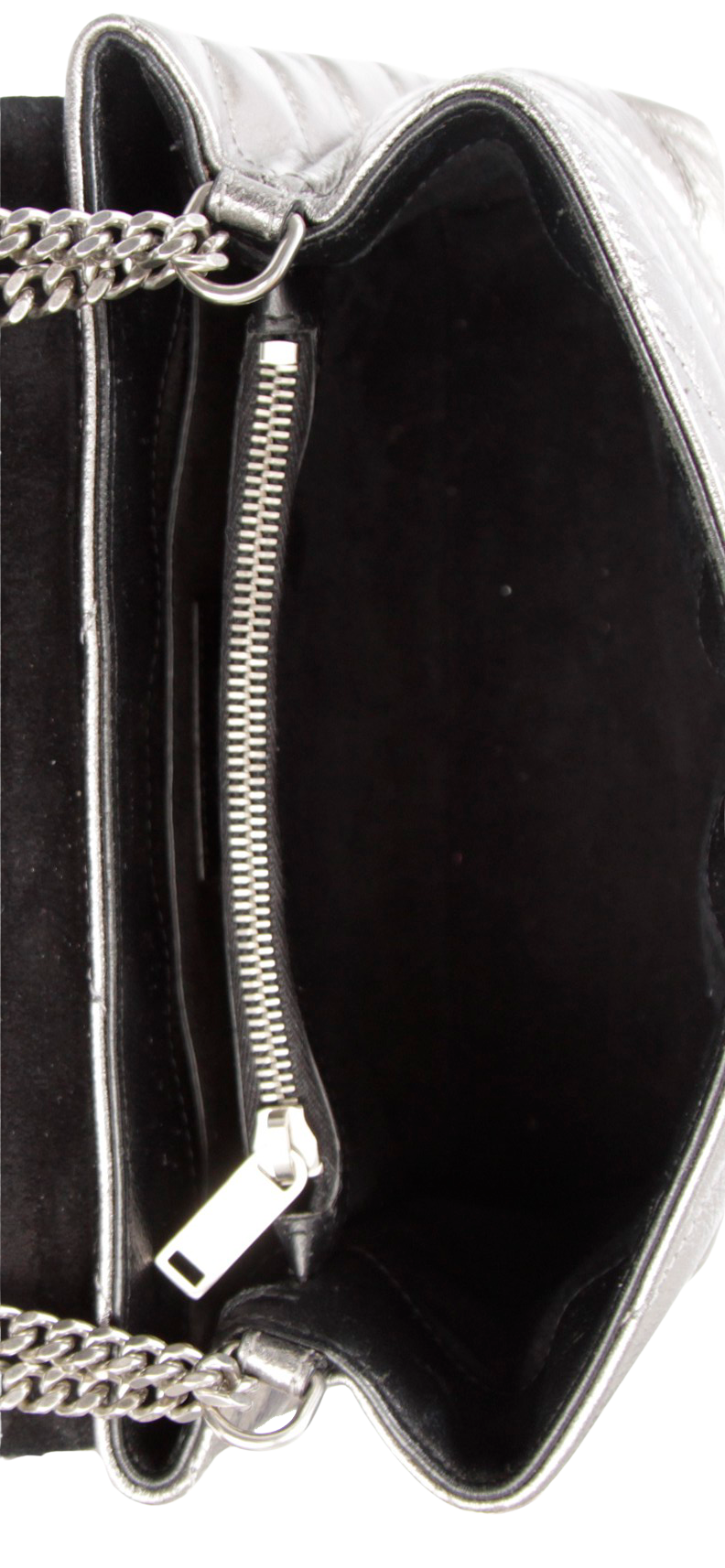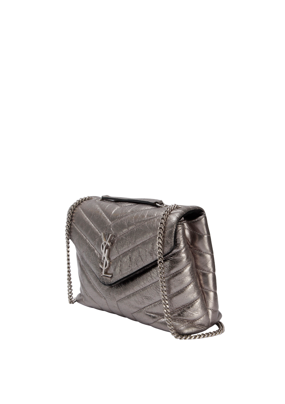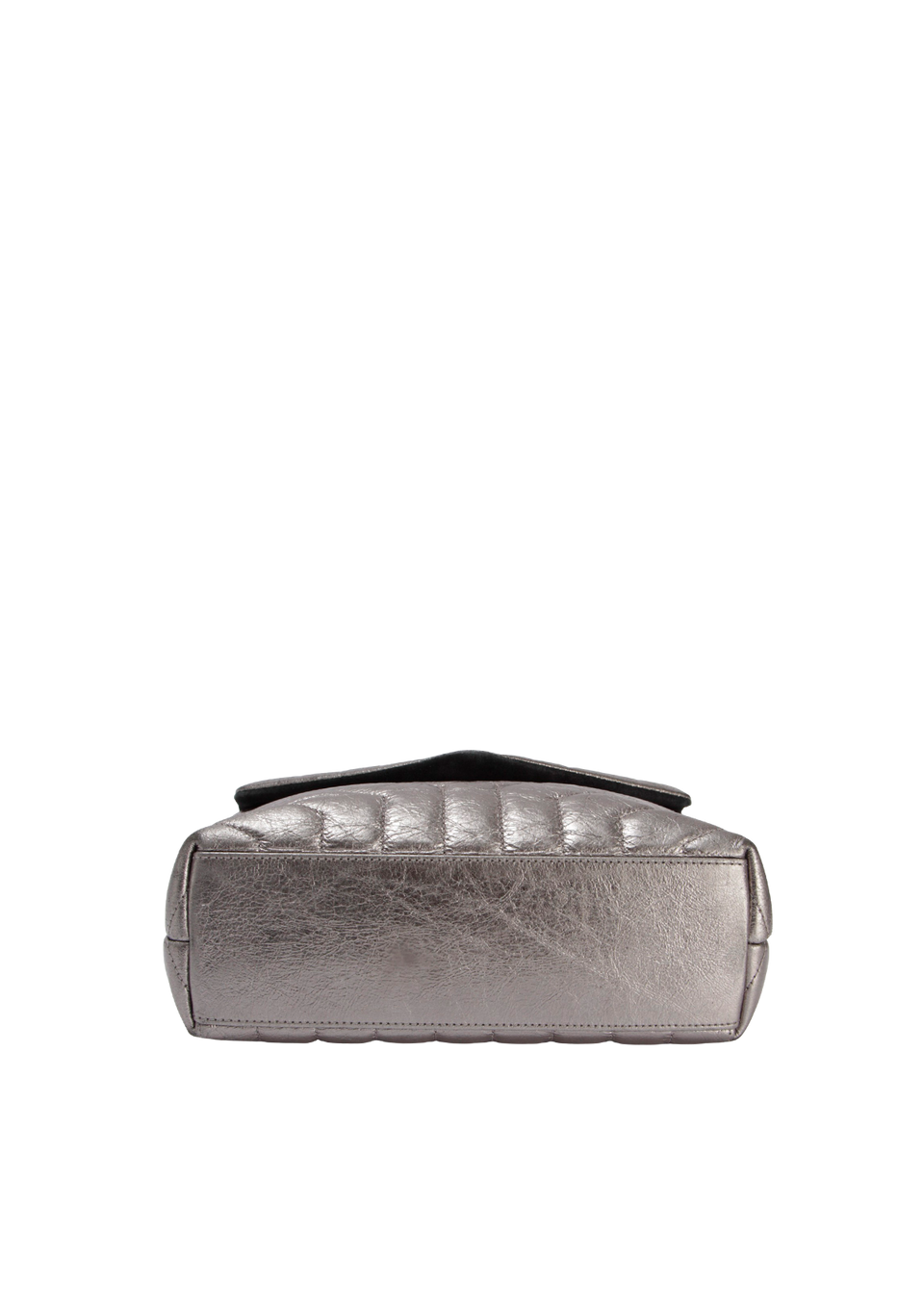 Descrição do Material: Couro calfskin prateado com acabamento matelassê chevron Y