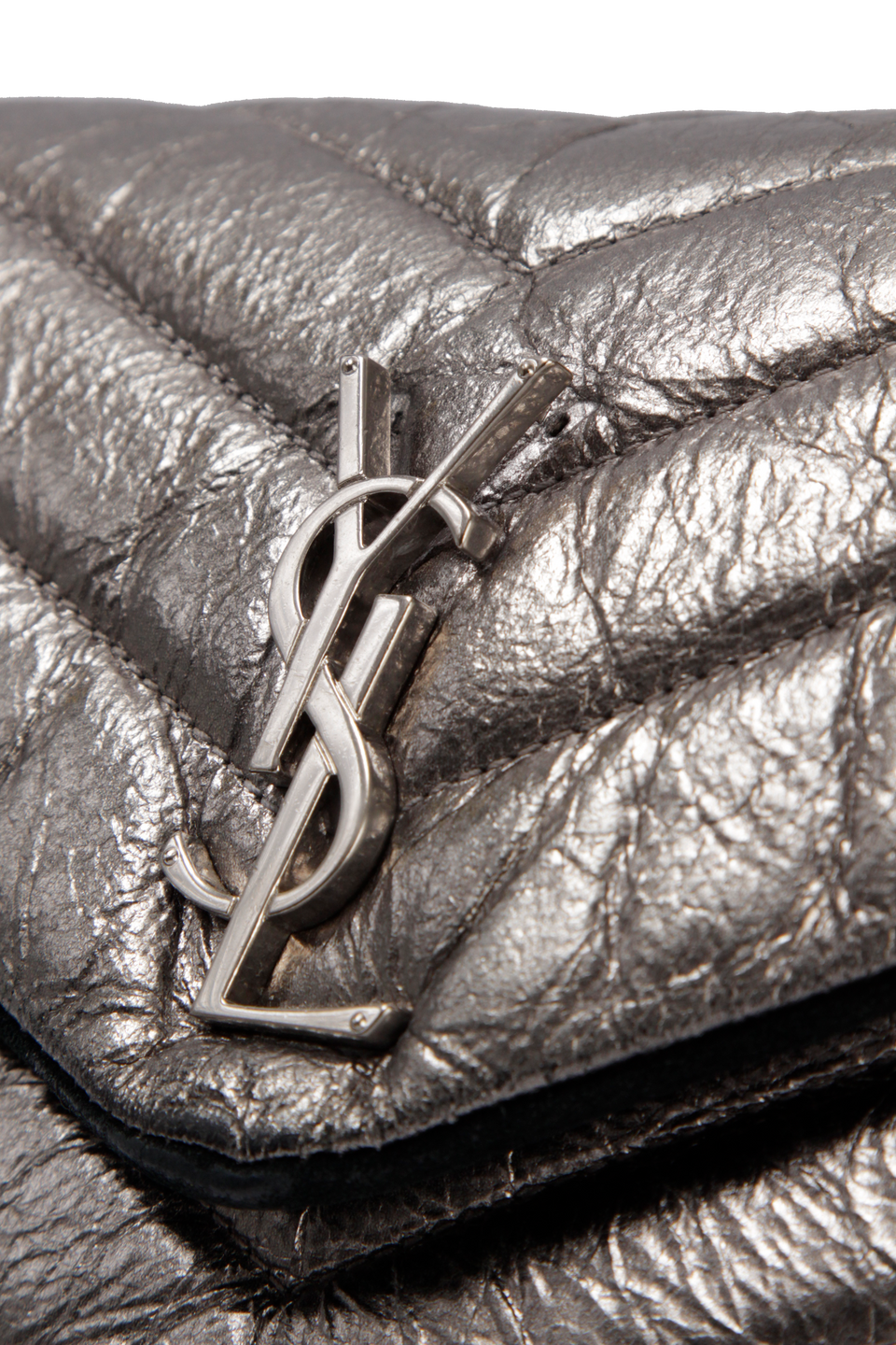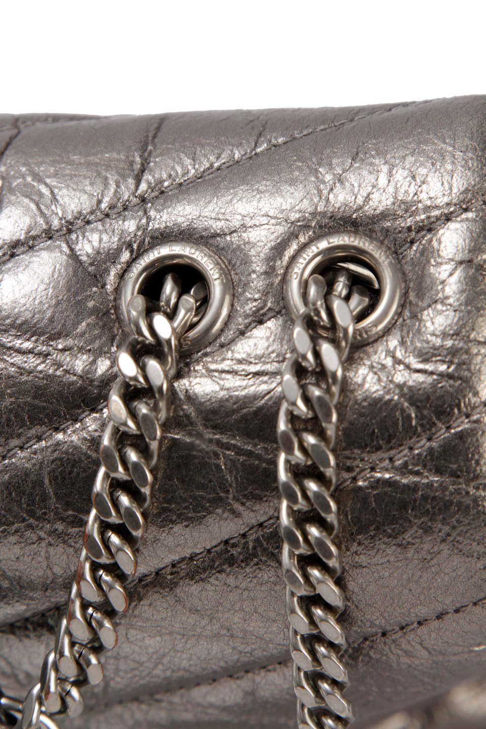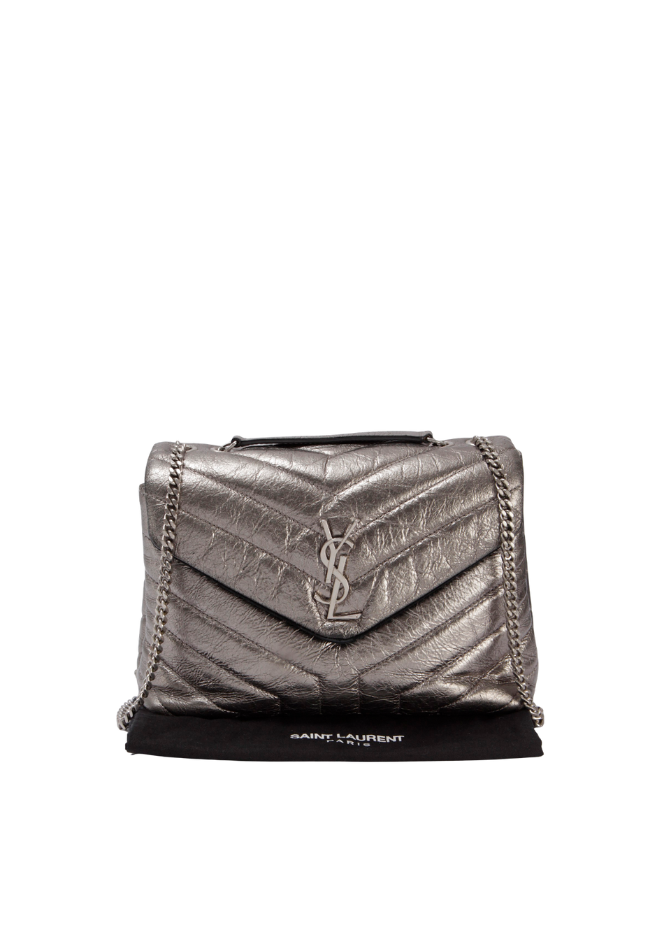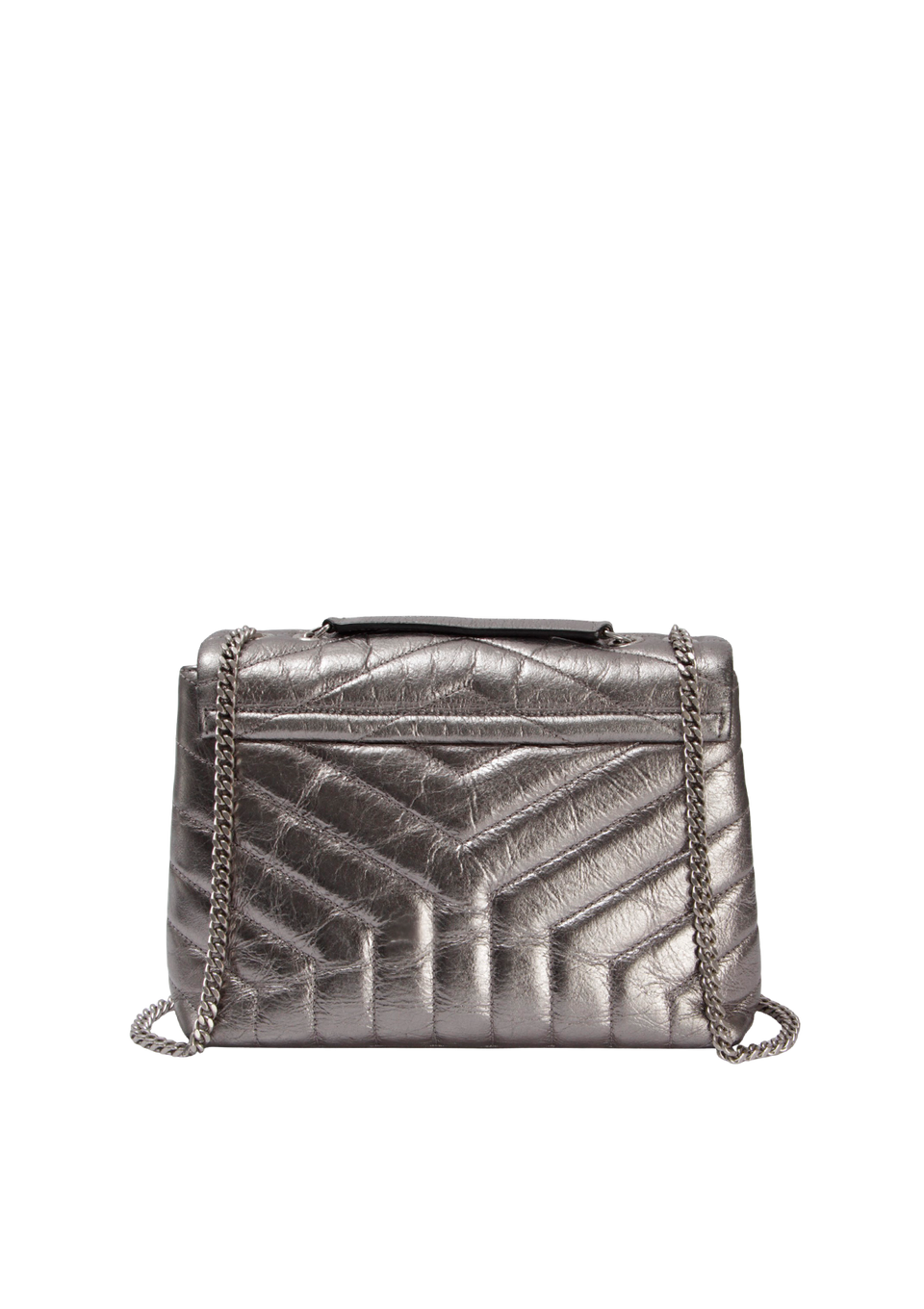 Descrição do Material: Couro calfskin prateado com acabamento matelassê chevron Y