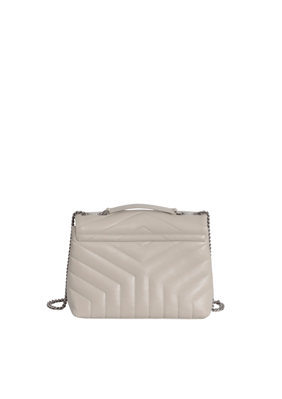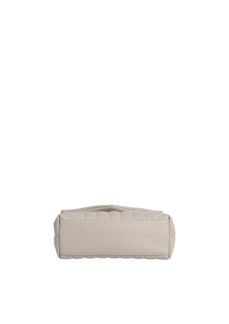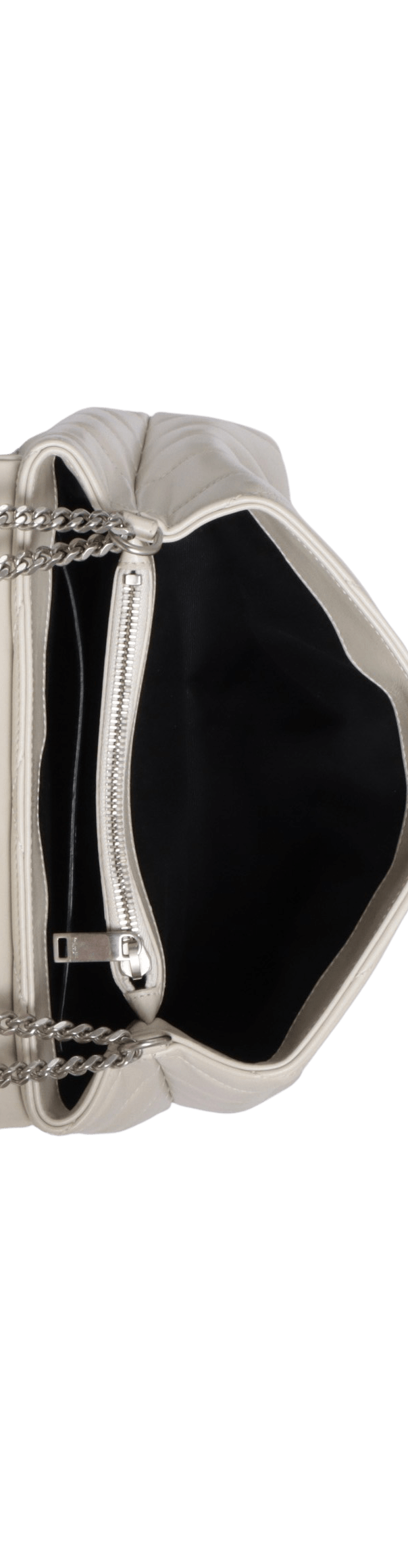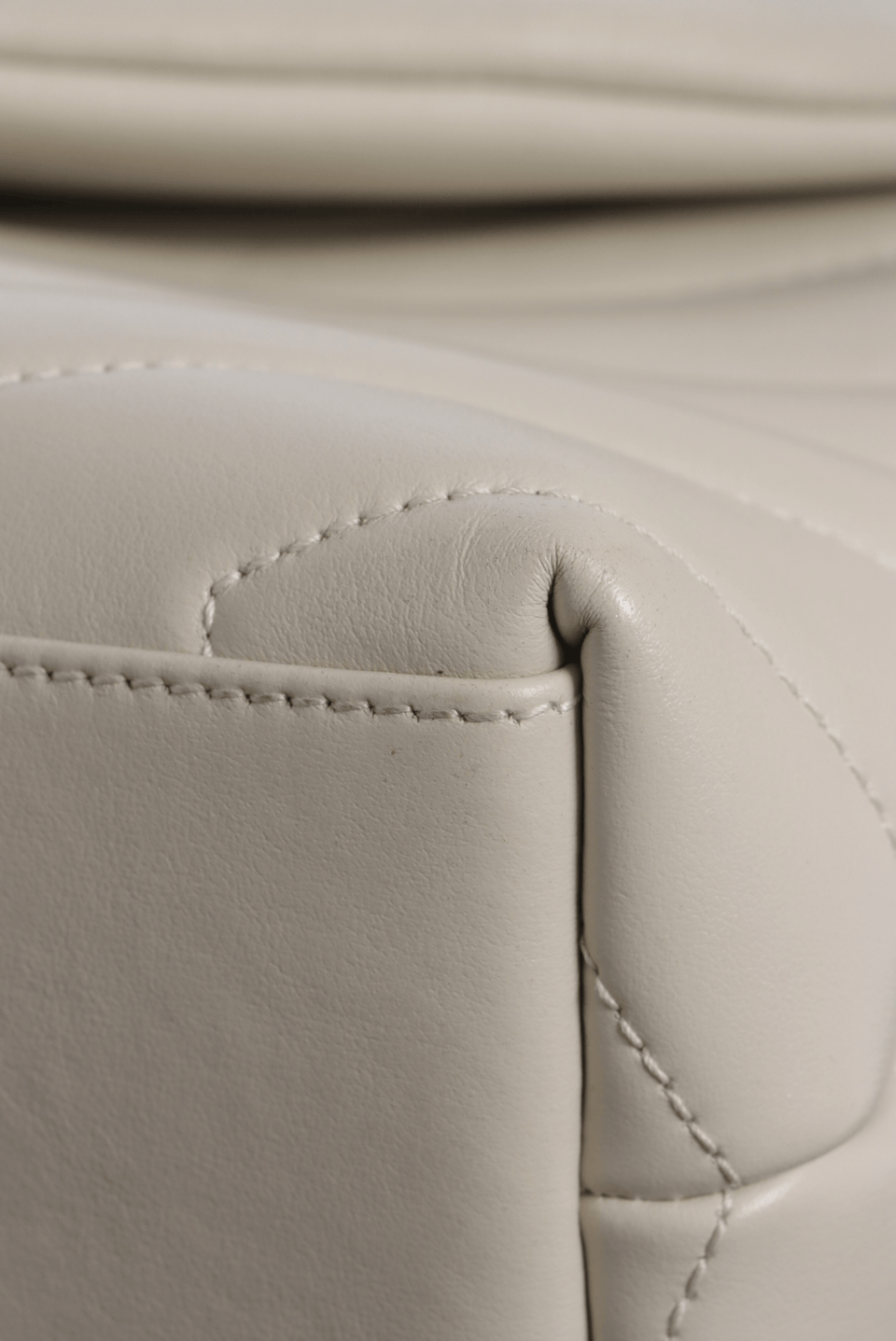 - Couro calfskin off white com acabamento matelassê chevron Y;