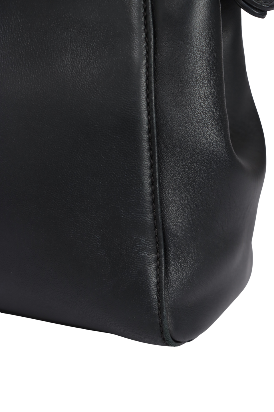 Bom, com aparência de usado. Apresenta leves manchas esbranquiçadas e desgastes pelo couro, especialmente na parte superior central frontal, extremidades superiores e cantos da base, pequenas marcas de uso e descolorações nas ferragens dos fechos e nos detalhes das alças, leves deformidades pela estrutura, principalmente no canto inferior direito frontal e na alça de ombro, pequenas fissuras nas partes inferiores da alça de mão e leves manchas e marcas de uso pelo couro interno.