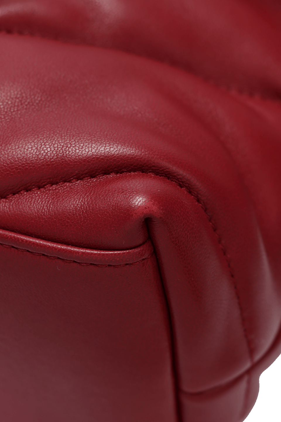 Muito bom, com aparência de seminovo. Apresenta levíssimos desgastes e marcas de uso pelo couro, especialmente nas extremidades inferiores e na base, mínimas manchas escurecidas e esbranquiçadas nos acabamentos inferiores e na base, levíssimas fissuras nas selagens, principalmente nos acabamentos das alças, mínimas marcas de uso nas ferragens, especialmente na logo e levíssimos desgastes no forro.