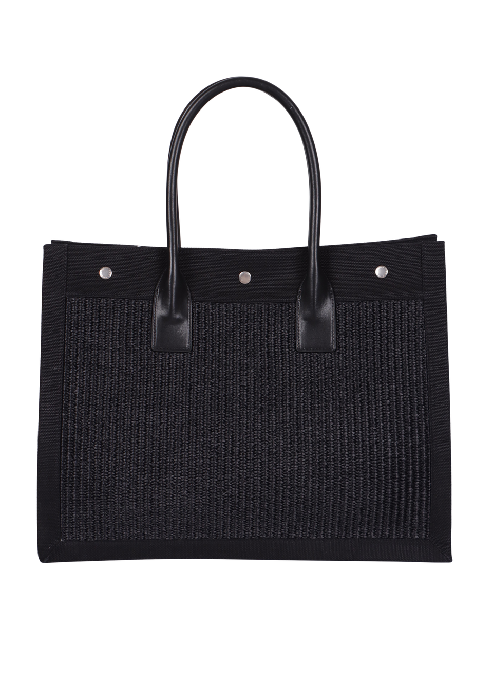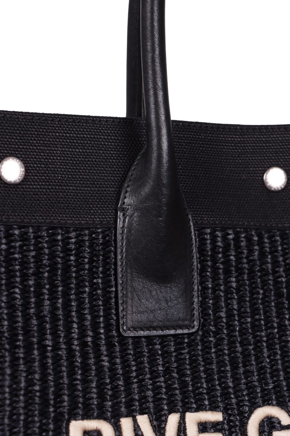 Descrição do Material: Ráfia preta com detalhes em linho e couro calfskin pretos