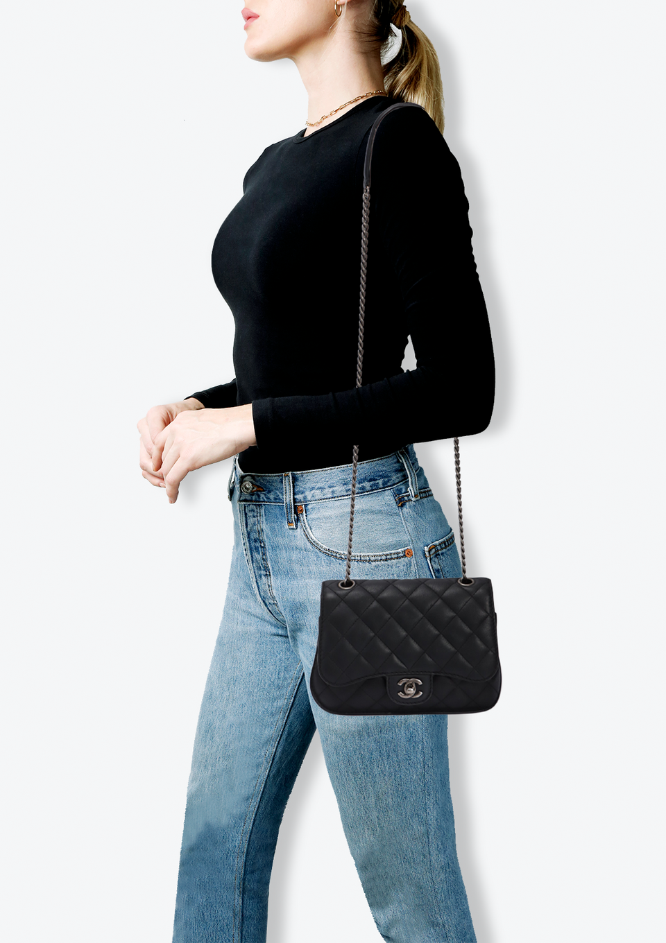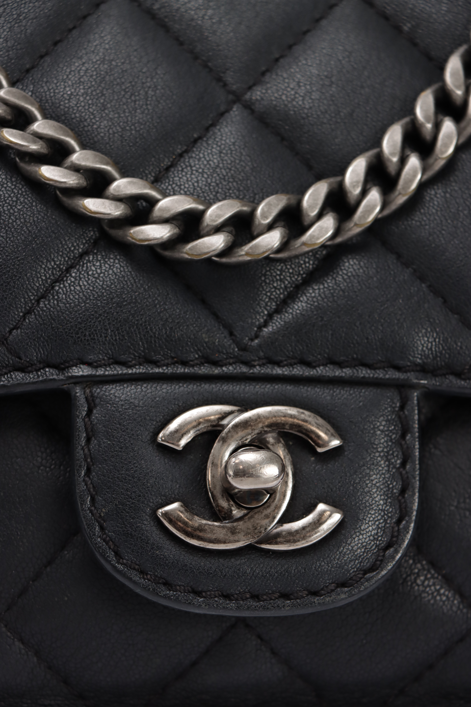 Descrição do Material: Couro calfskin preto com acabamento matelassê