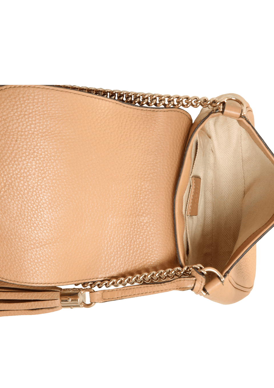Condição: Muito bom, com aparência de seminovo. Apresenta cantos da base minimamente desgastados, leves desgastes no acabamento superior lateral, mínima mancha esbranquiçada na lateral direita, pequenas manchas de uso no forro e ferragens com leves descolorações, principalmente a do tassel.