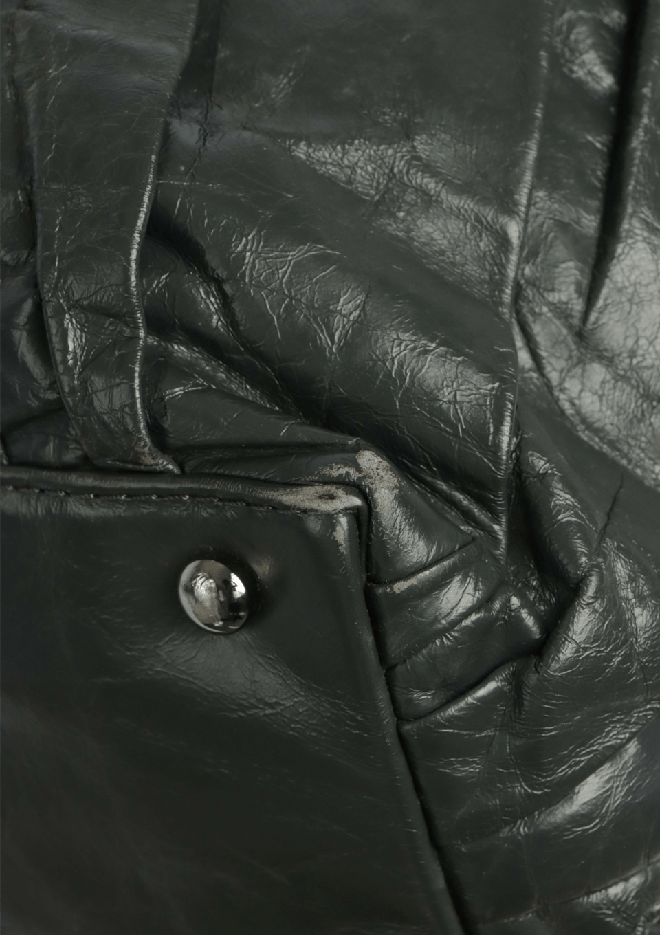 Condição: Bom, com aparência de usado. Apresenta desgastes pelo couro externo, principalmente nos cantos da base, dobra e deformação na estrutura interna da base, riscos, leves marcas de atrito nas ferragens, pequenas manchas na parte interna do bolso fechado por cursor e pequena descostura da logo interna.