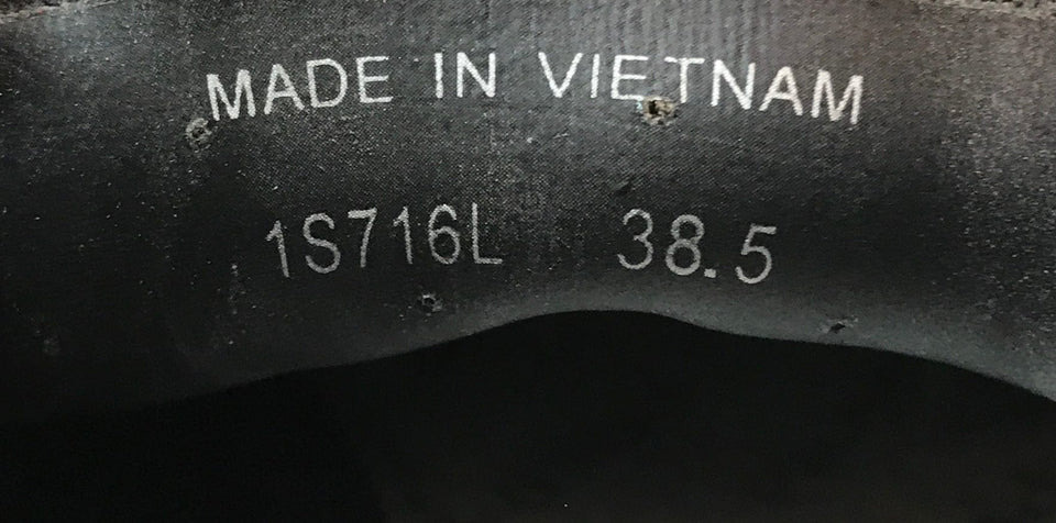 - Tamanho 38.5 na sola, aproximadamente 36.5 no Brasil;
