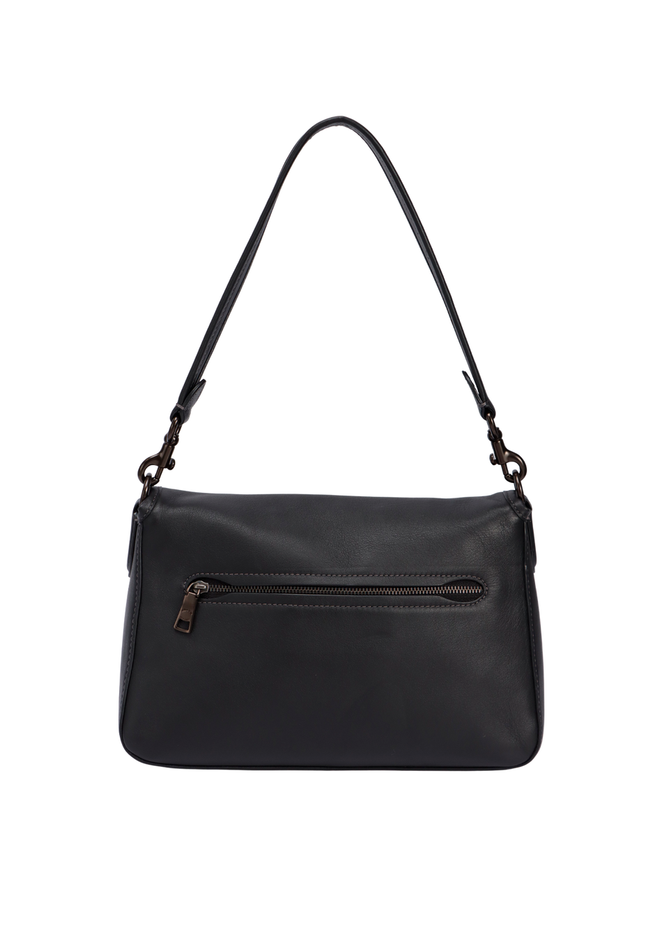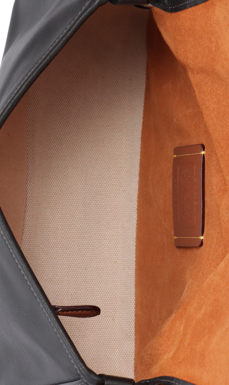 Bom, com aparência de usado. Apresenta leves deformidades pela estrutura, especialmente do lado direito superior e na parte central de trás, pequenas marcas de uso pelo couro, principalmente na parte inferior central frontal da aba, nas base do lado direito e na parte inferior de trás, leves descolorações e marcas de uso nas ferragens do fecho frontal e nos detalhes da alça, pequenos puídos e marcas de uso no suede interno e levíssimas manchas de uso pelo forro.