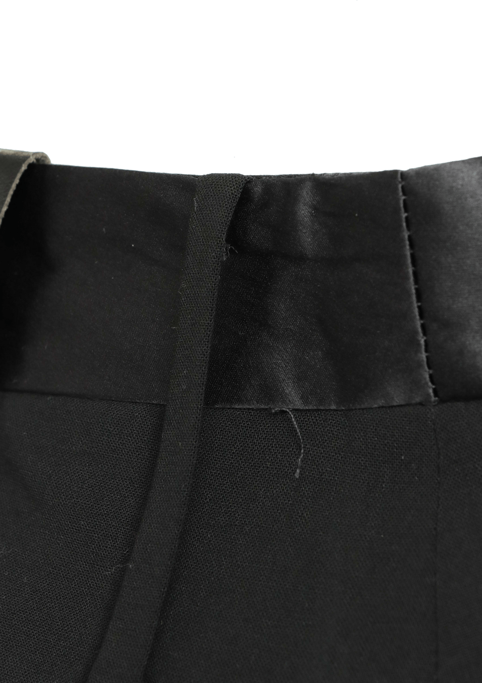 Condição: Bom, com aparência de usado. Apresenta descosturas e fios puxados nos passantes, pequenos desgastes nos detalhes em cetim e couro, desgastes e manchas nas ferragens, mínimos fios puxados nas costuras internas e mínimas manchas pelo tecido e etiquetas internas.