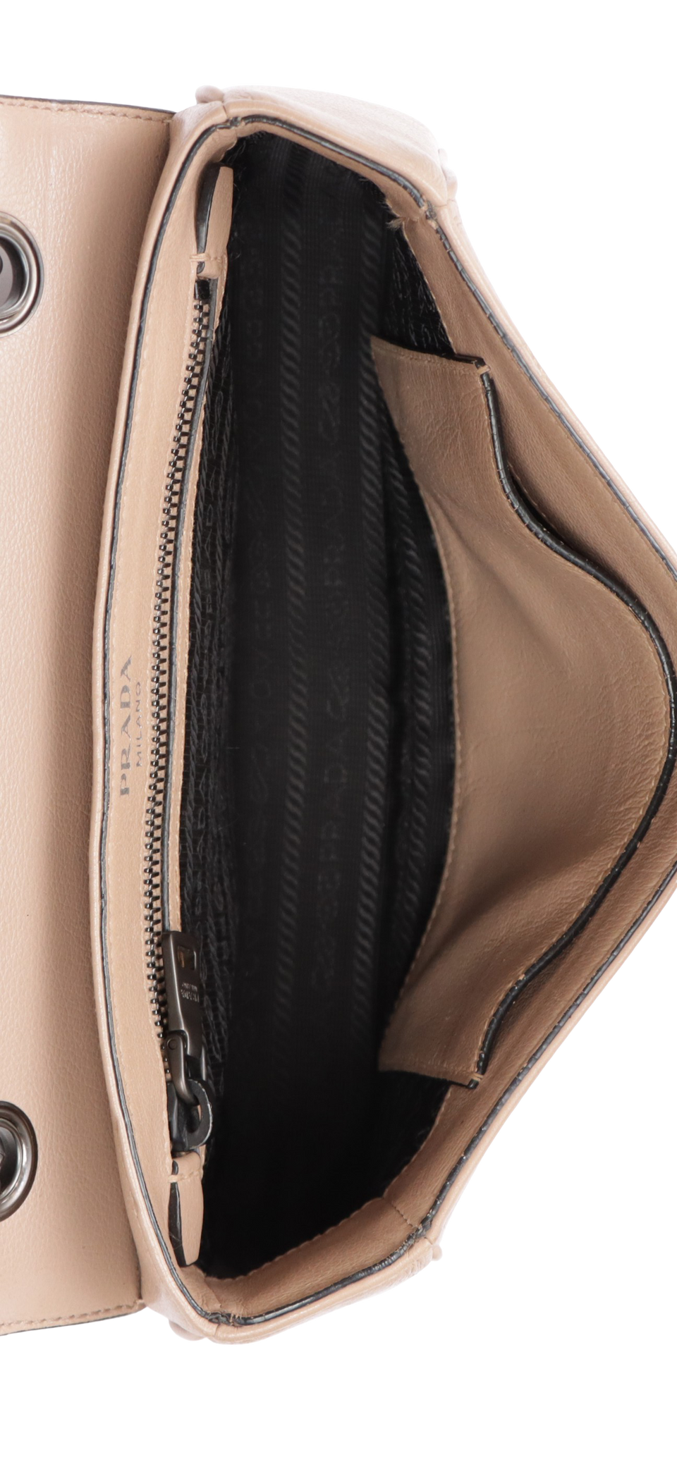 Descrição do Material: Couro calfskin bege com acabamento glace