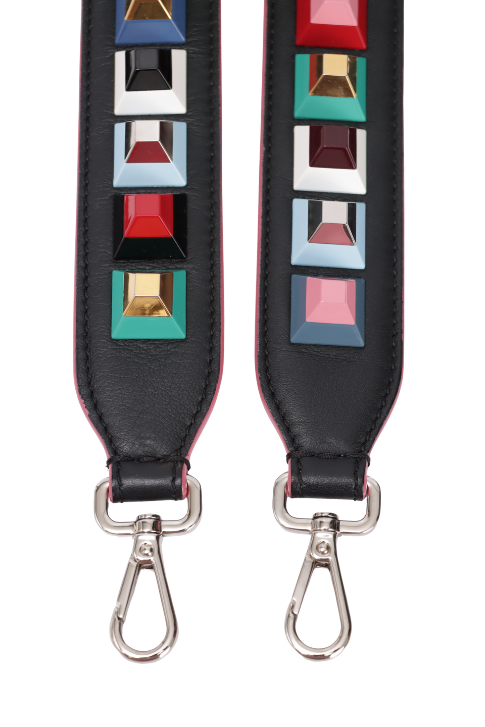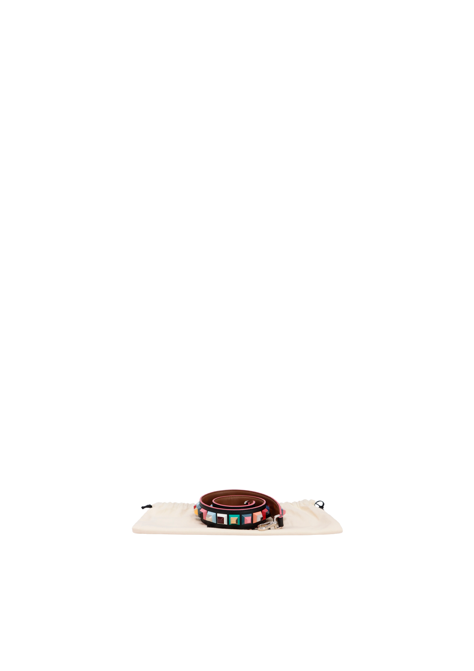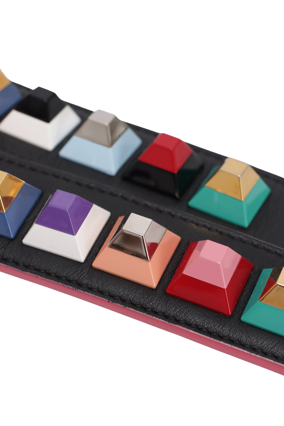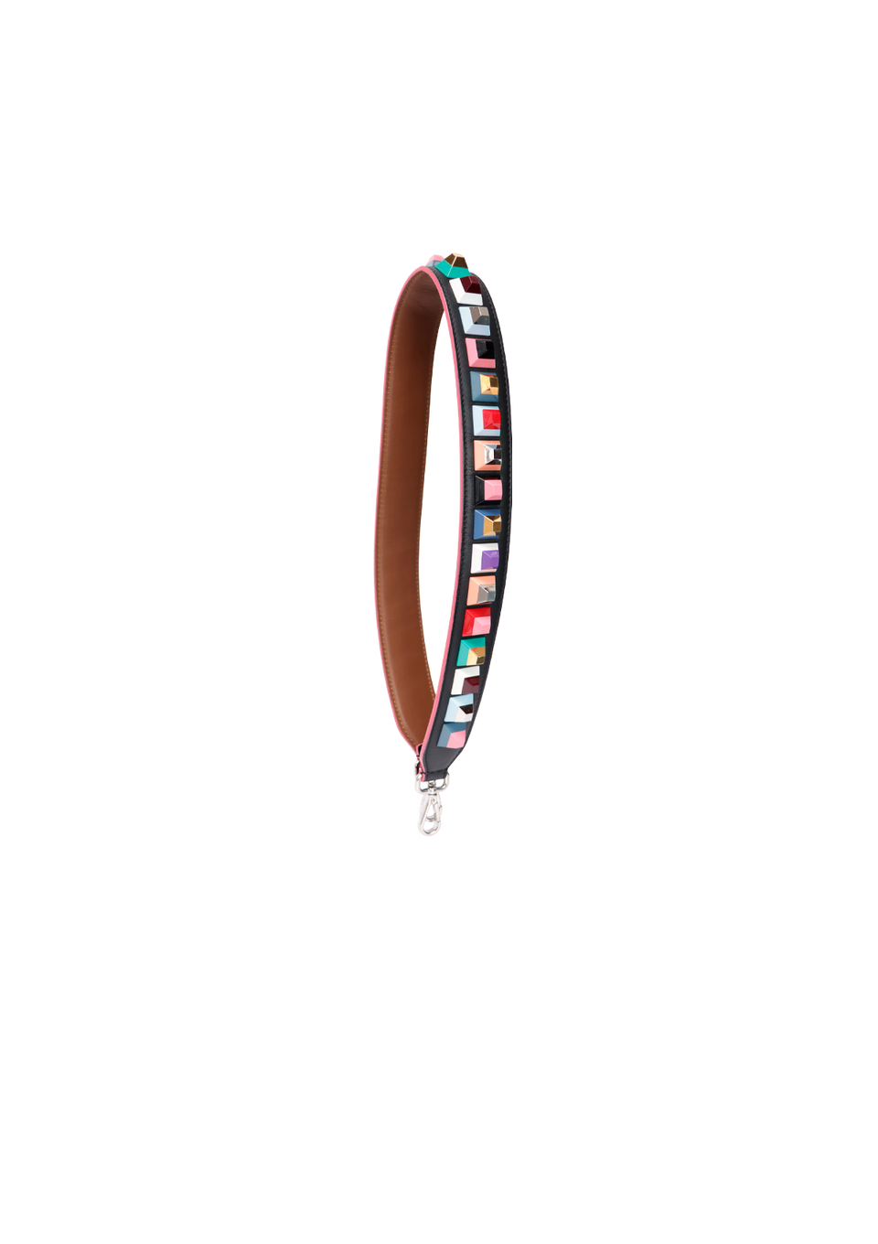 Descrição do Material: Couro de vitello preto e marrom com studs coloridos
