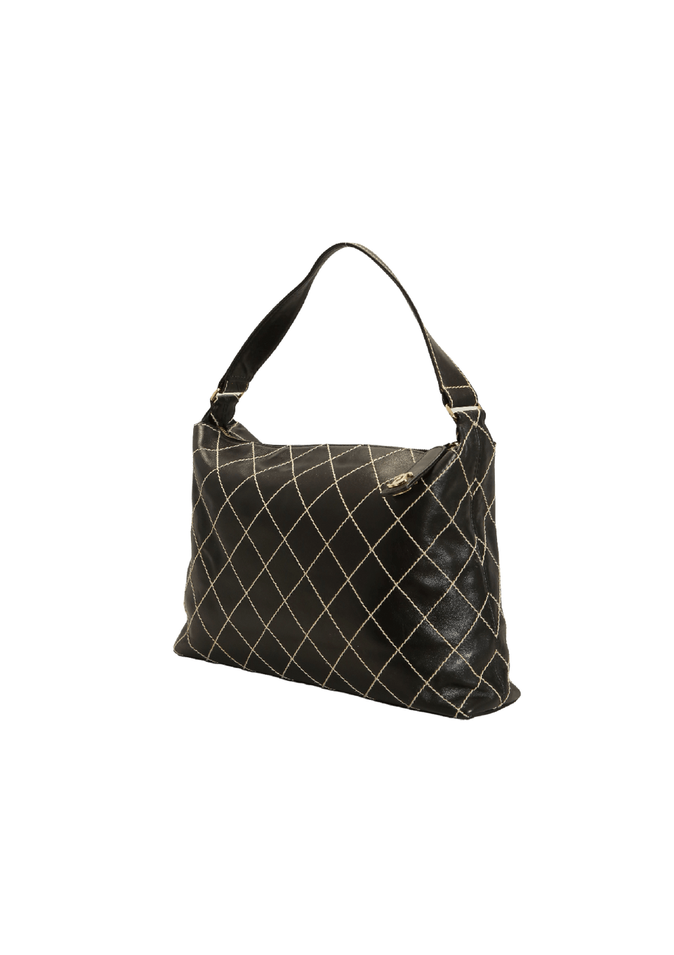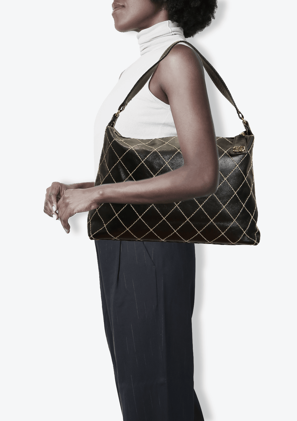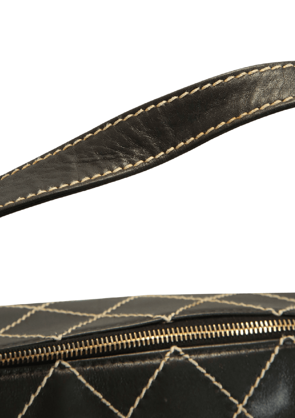 Condição: Bom, com aparência de usado. Apresenta deformação na alça, riscos nas ferragens, marcas no couro da base e odor característico de item guardado.