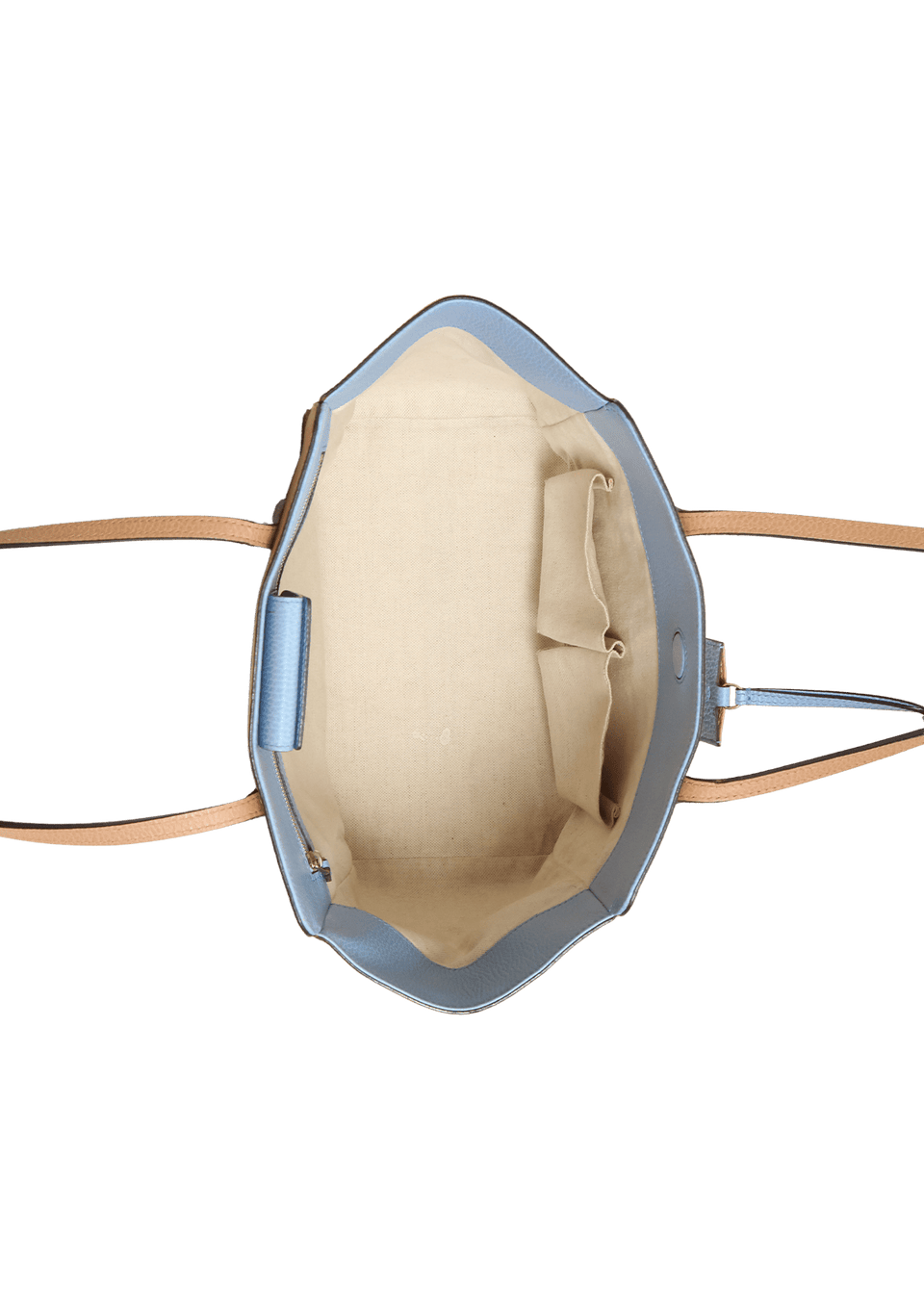 - Couro calfskin bege e azul;