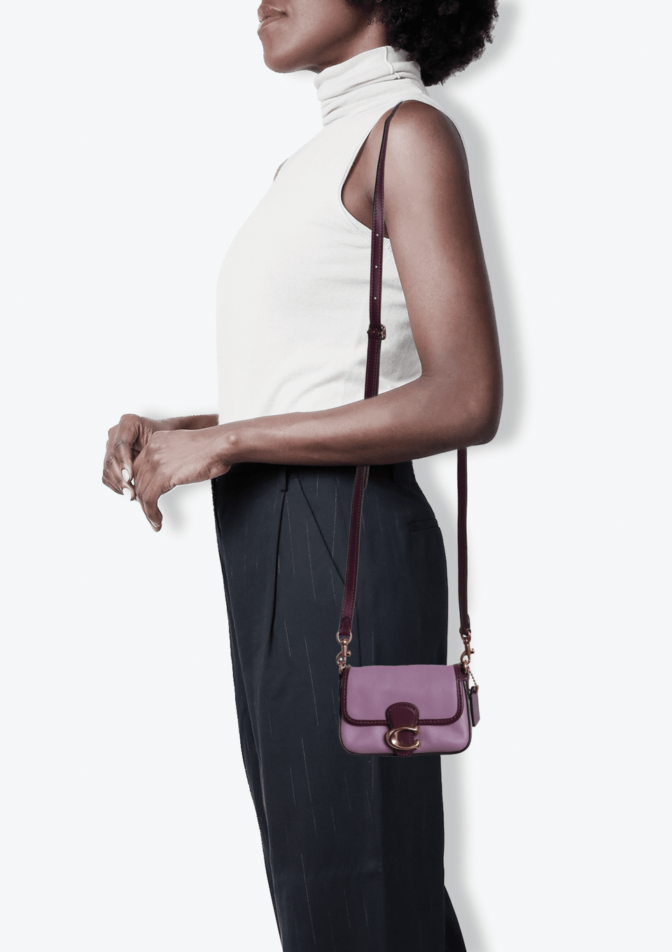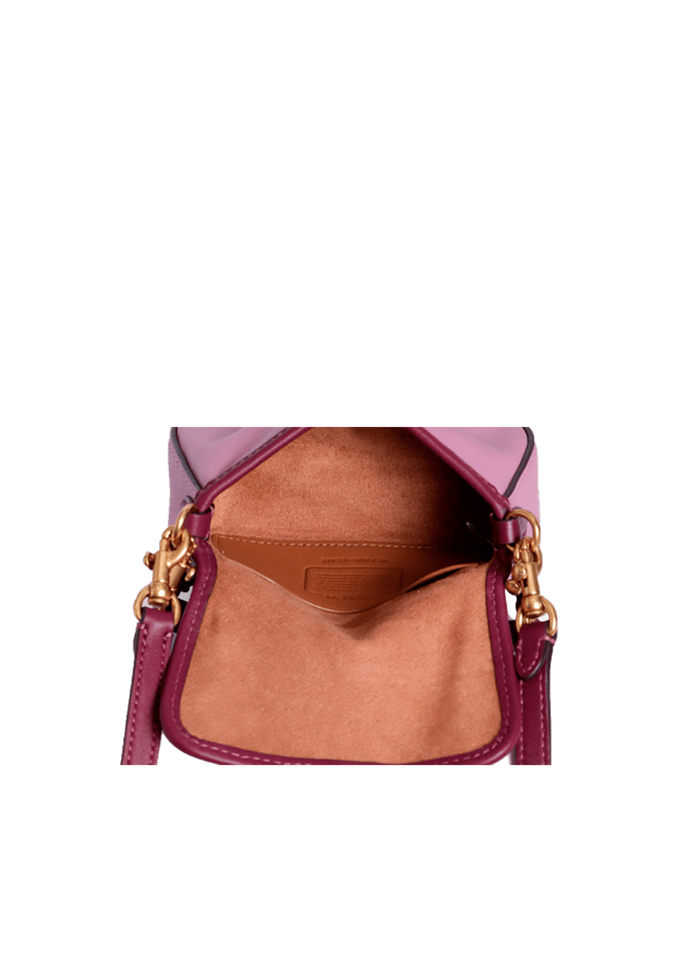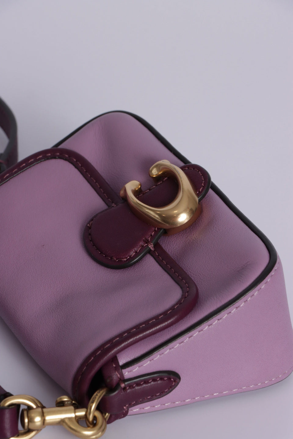 - Couro calfskin lilás e roxo com acabamento escovado;