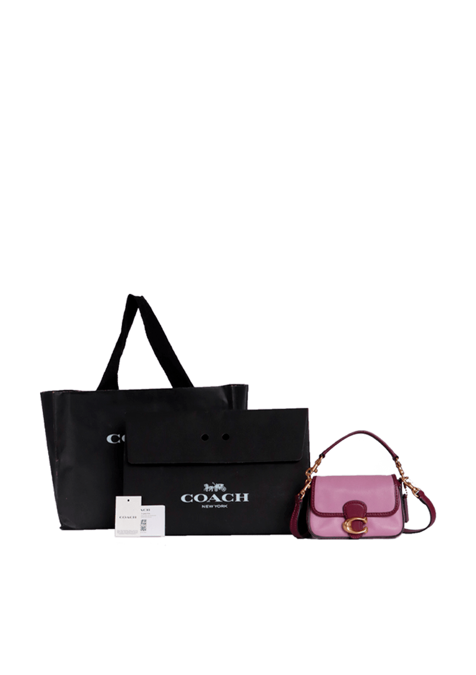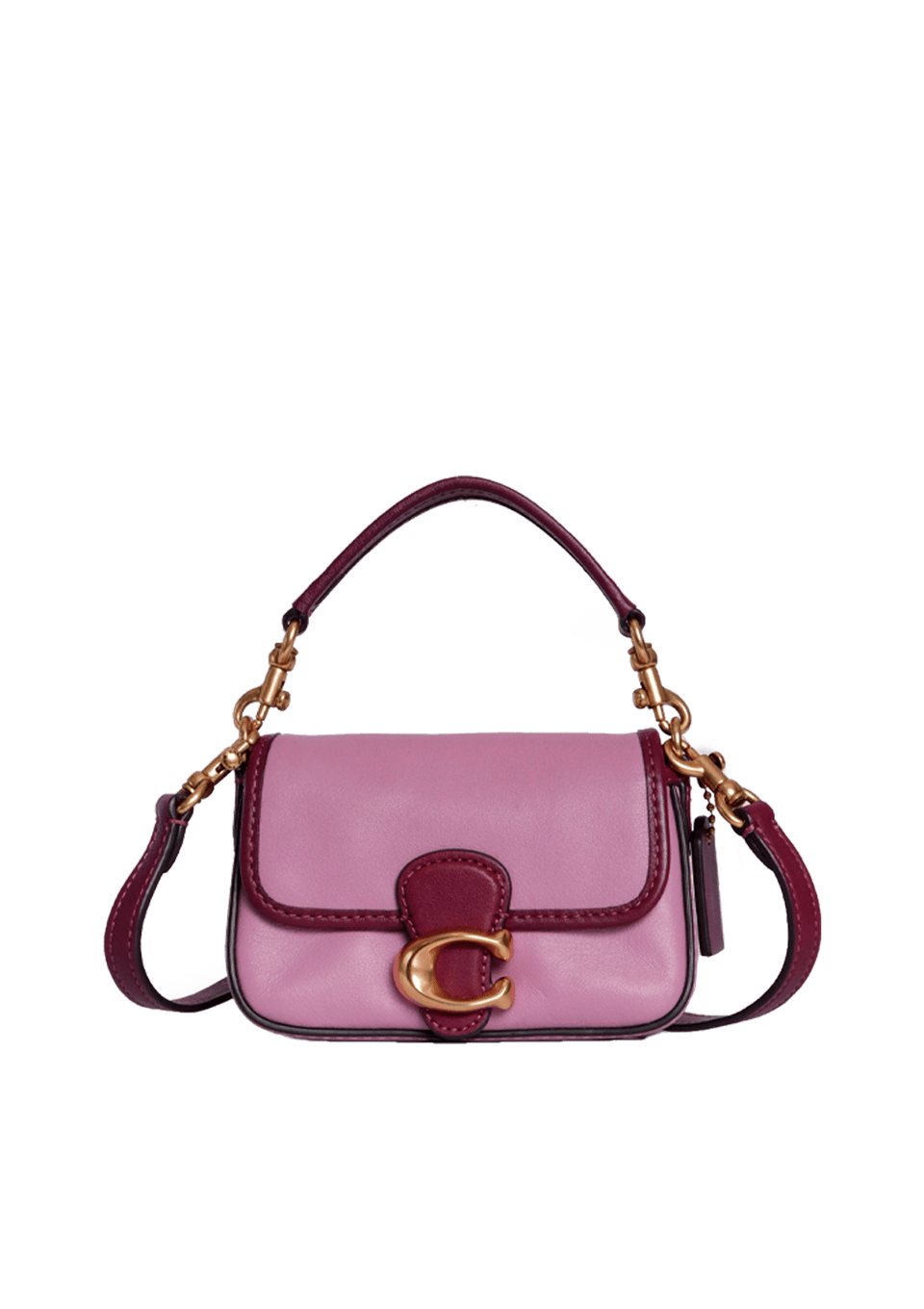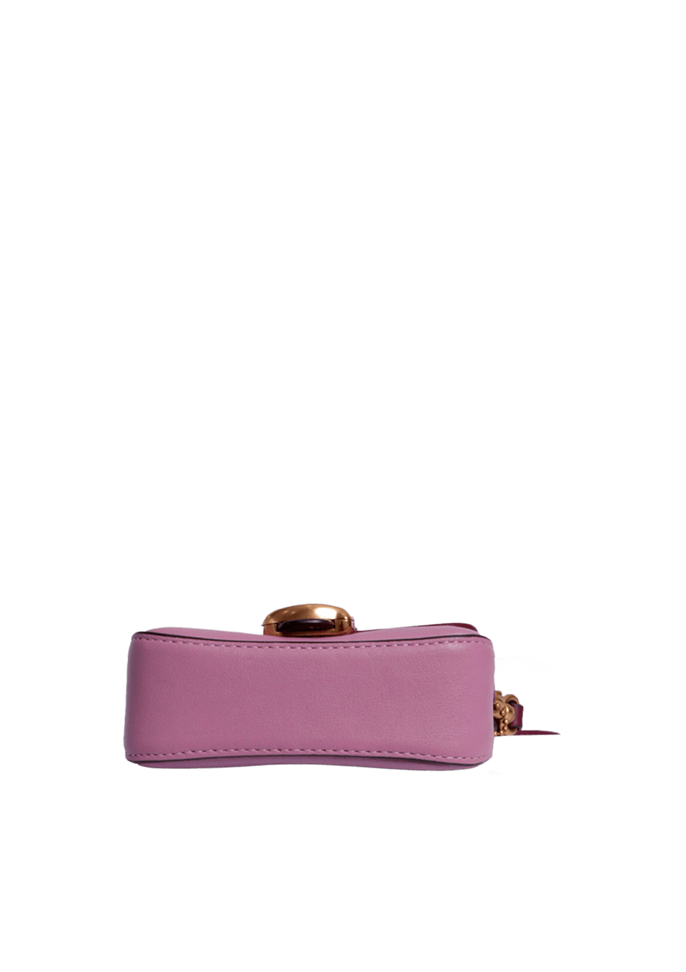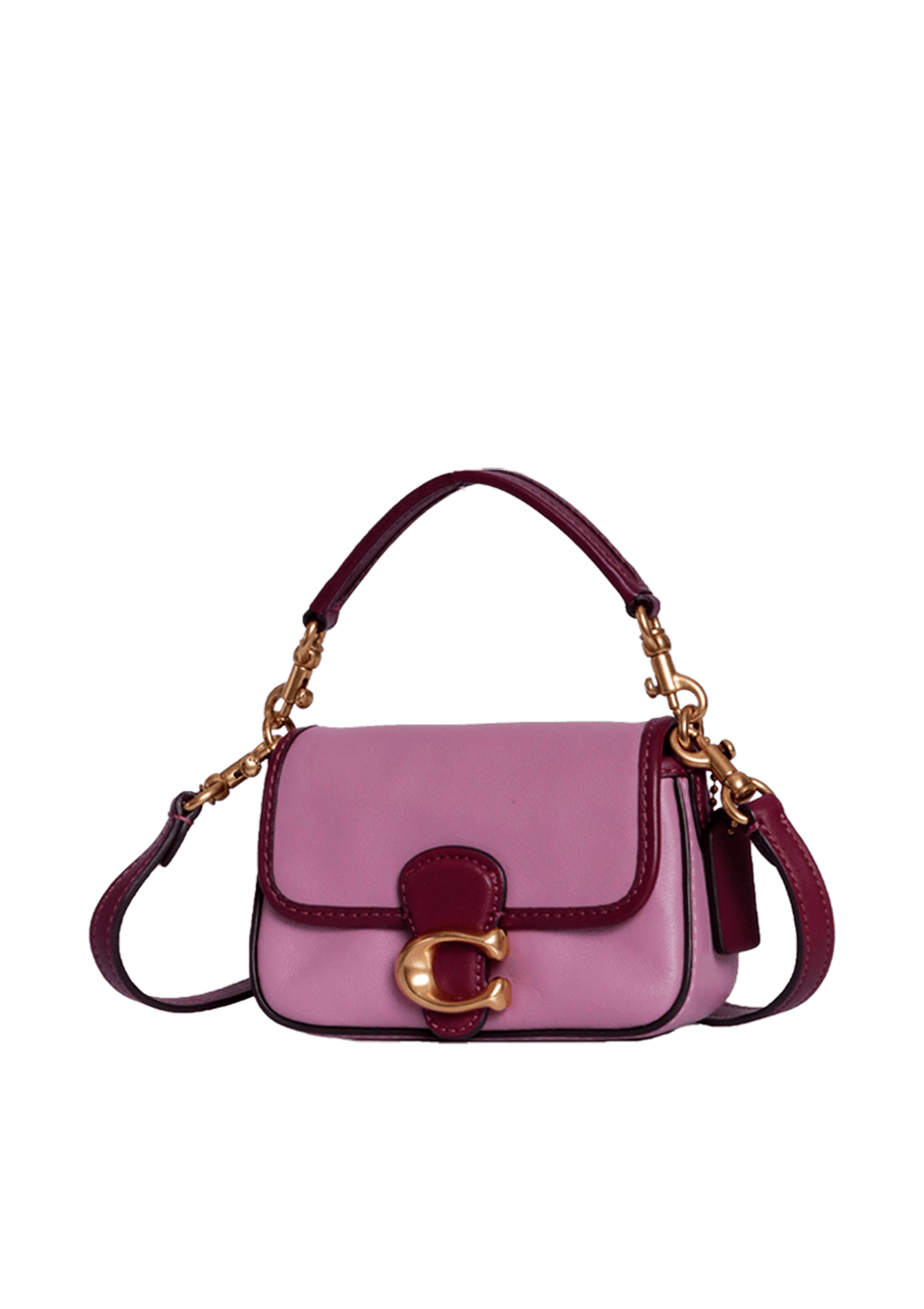 - Couro calfskin lilás e roxo com acabamento escovado;