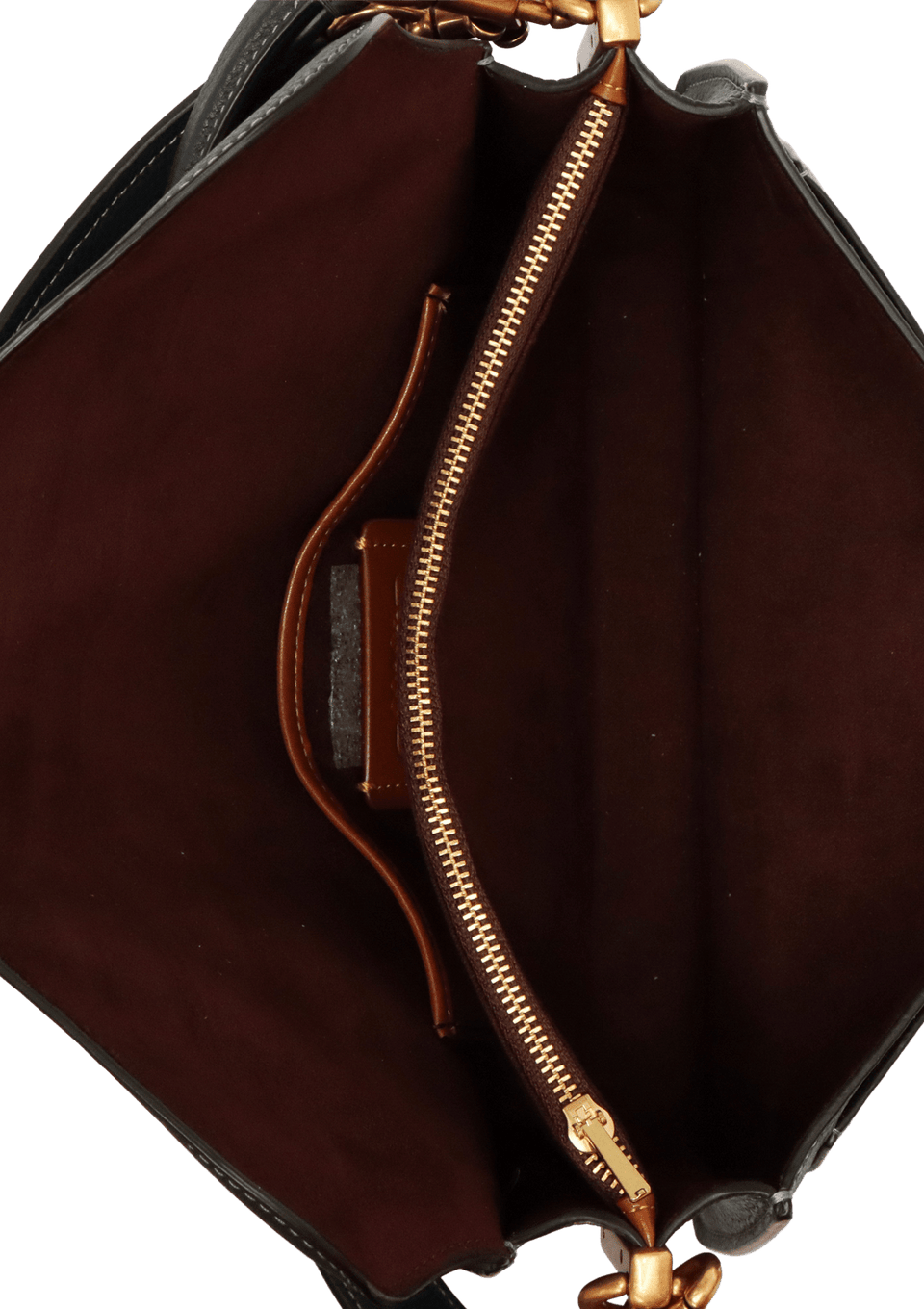 - Dois compartimentos reduzidos com dois bolsos internos, sendo um aberto e um fechado por cursor, e dois bolsos externos abertos;