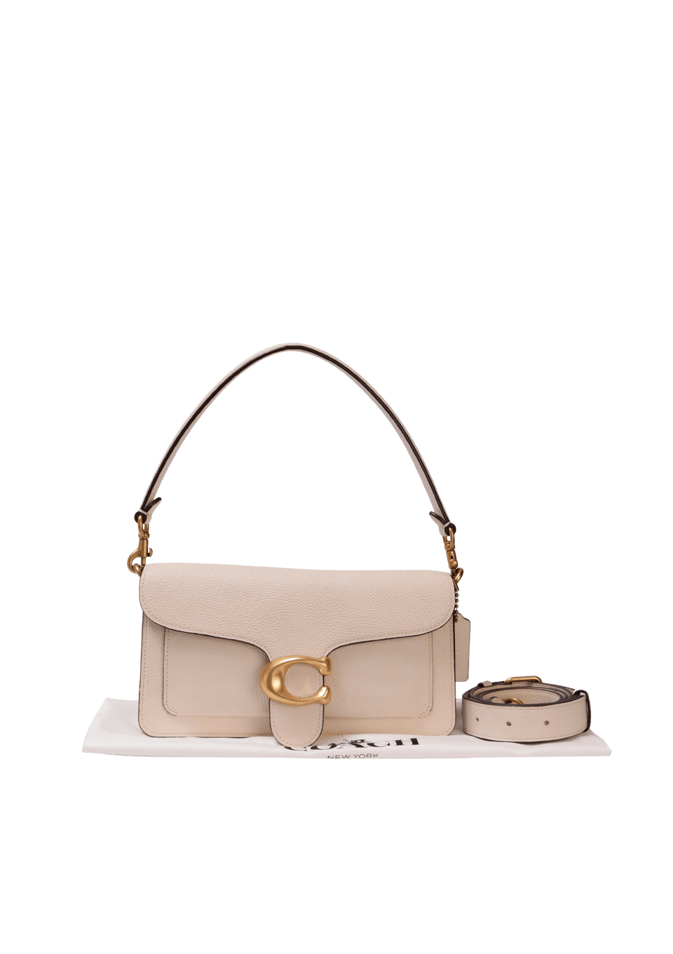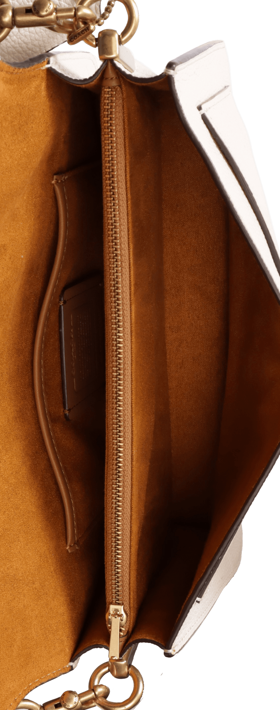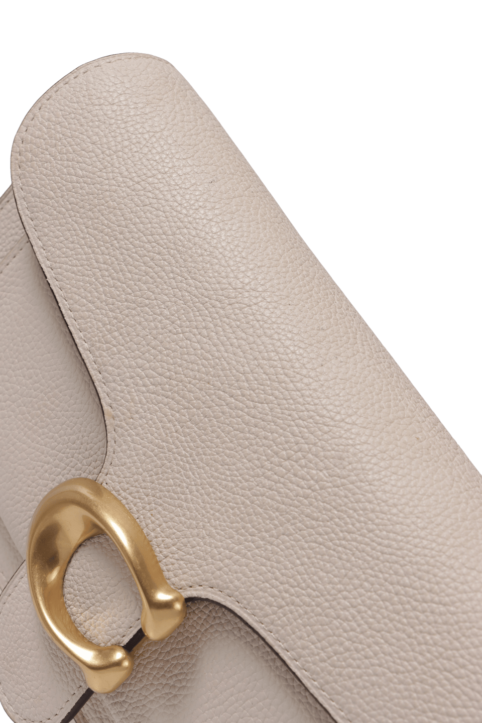 Bom, com aparência de usado. Apresenta leves desgastes, manchas escurecidas e azuladas pelo couro, especialmente na aba e na parte frontal do lado esquerdo, pequenos resíduos nos acabamentos da aba, leves marcas de uso e descolorações e ferragens, principalmente na logo e nos acabamentos das alças, pequena marcas de uso nas selagens e leves desgastes, marcas de uso e manchas escurecidas nas partes internas, especialmente no compartimento frontal.