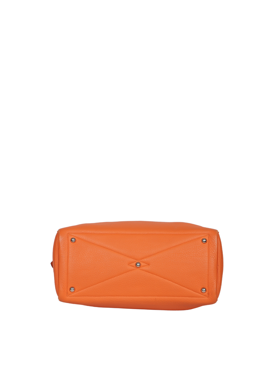 Peça muito bem conservada, com leves sinais de uso visíveis, porém discretos. Pode apresentar marcas e descolorações nas ferragens, desgastes nas extremidades, suaves vincos na matéria-prima, singela deformação na estrutura devido ao armazenamento, discreto ressecamento do couro ou sinais no forro, como manchas ou descosturas.