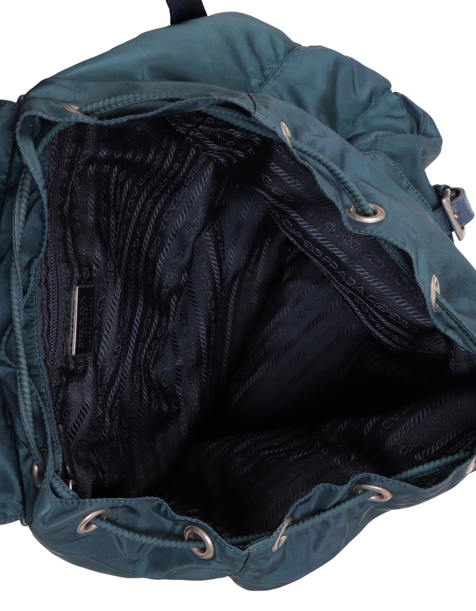 Regular. Apresenta severas manchas esbranquiçadas e de uso pelo nylon, especialmente nas abas dos bolsos externo frontais, na parte central da aba principalmente, nas partes inferiores das laterais e na parte inferior de trás, consideráveis marcas de uso e oxidações nas ferragens da logo fontal, nas fivelas dos fechos e nos detalhes das alças, notáveis desgastes, manchas e marcas de uso nos detalhes em couro, principalmente no ponto de ajuste das tiras do fecho, na parte superior de trás e nas tiras dos fechos das fivelas e consideráveis fios repuxados e puídos pelo forro.