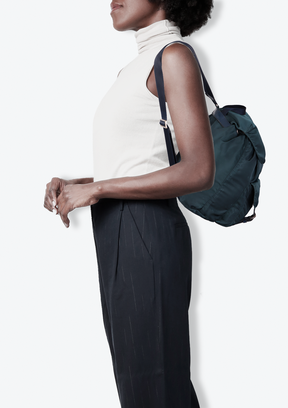 Descrição do Material: Nylon azul com detalhes em couro calfskin azul