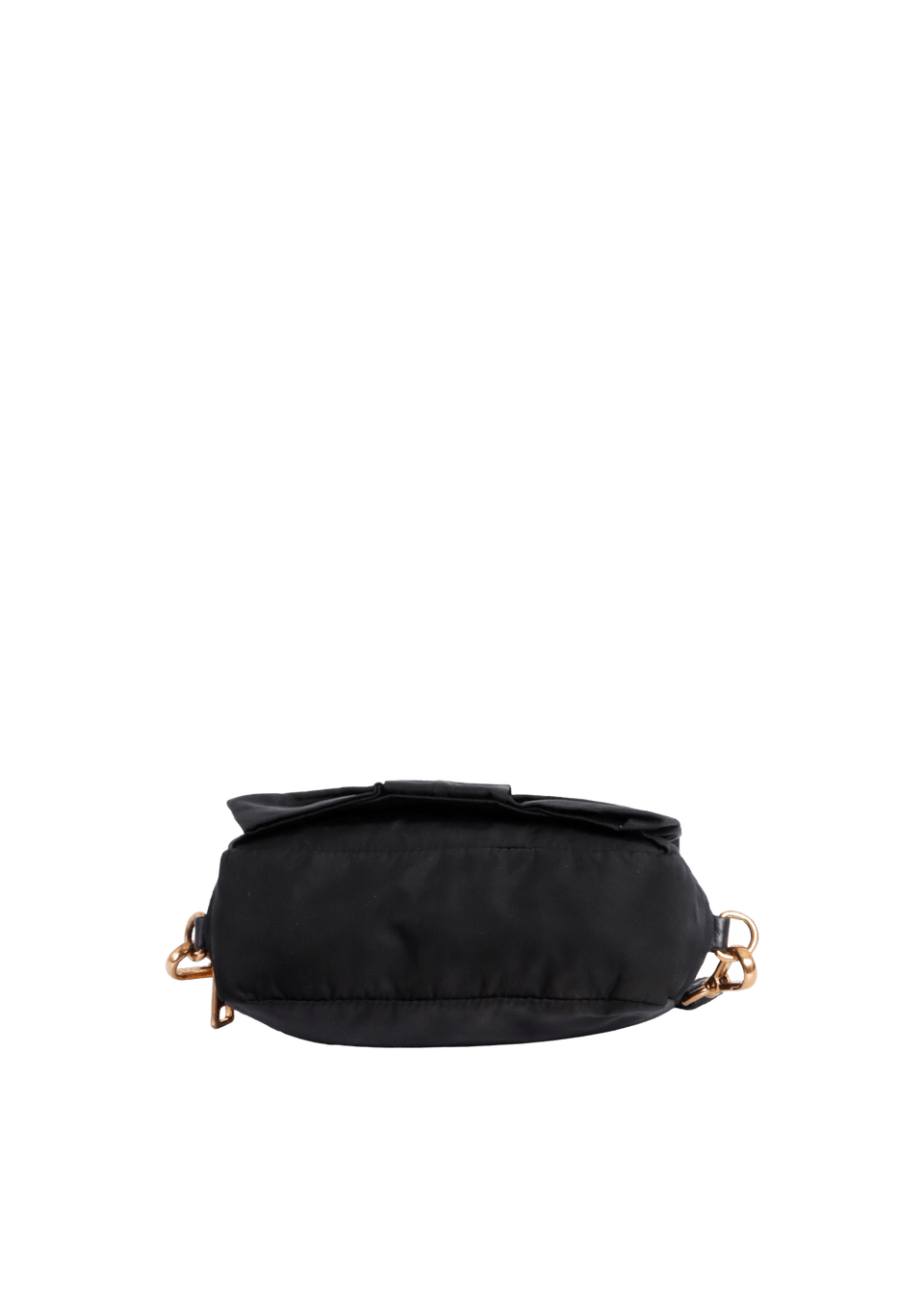 Condição: Bom, com aparência de usado. Apresenta perda e desgastes das costuras dos detalhes frontais, severas manchas esbranquiçadas e pelos de contato por todo nylon, especialmente da parte frontal e inferior posterior, notável deformação da estrutura da alça, consideráveis descolorações das ferragens, notáveis fissuras nas selagens e consideráveis marcas de uso no forro, principalmente puídos e manchas de uso.