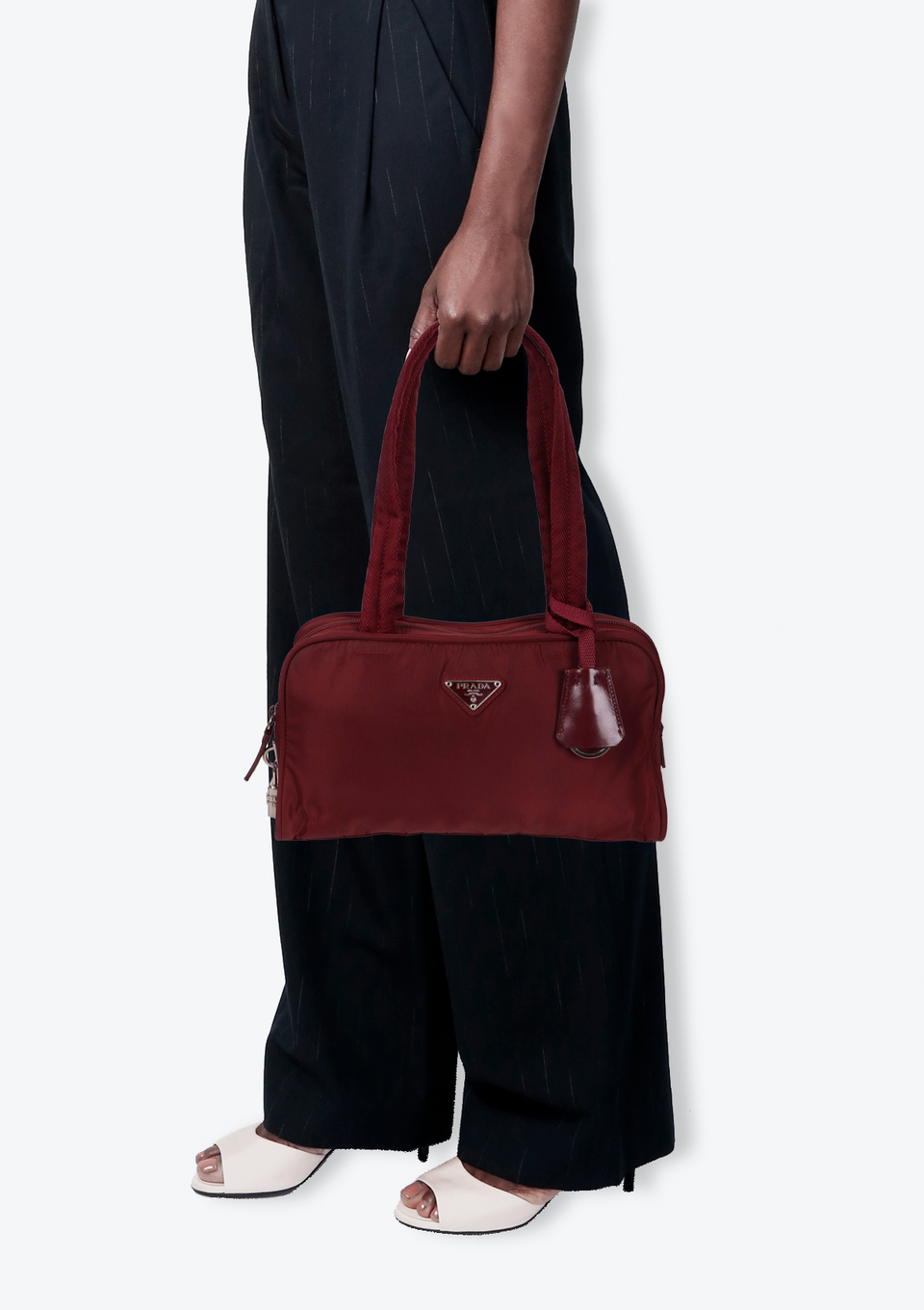 Descrição do Material: Nylon bordô com detalhes em couro calfskin