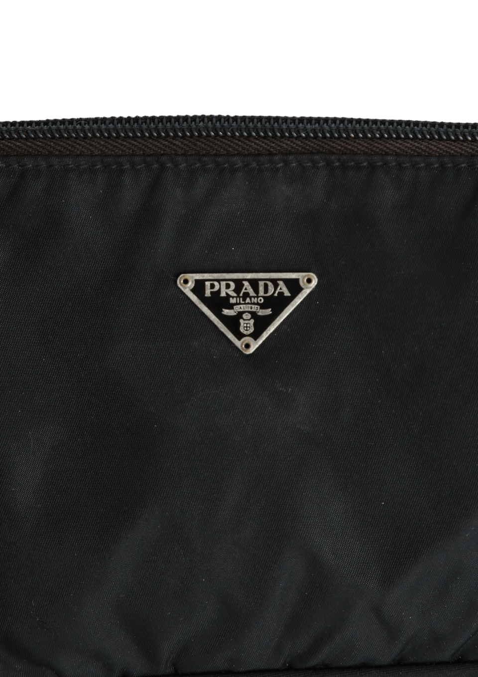 Condição: Regular. Apresenta manchas esbranquiçadas na parte superior da frente, pequeno rasgo na parte inferior da frente e traseira, perda de coloração e marcas de uso nas ferragens, leves desgastes nas duas pontas da alça, traseira e forro, e leves puídos principalmente nas selagens.