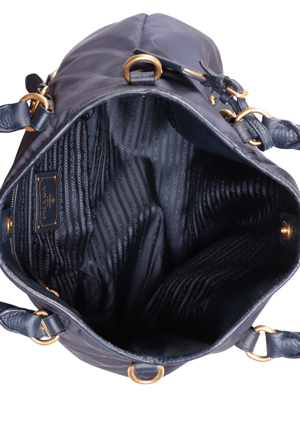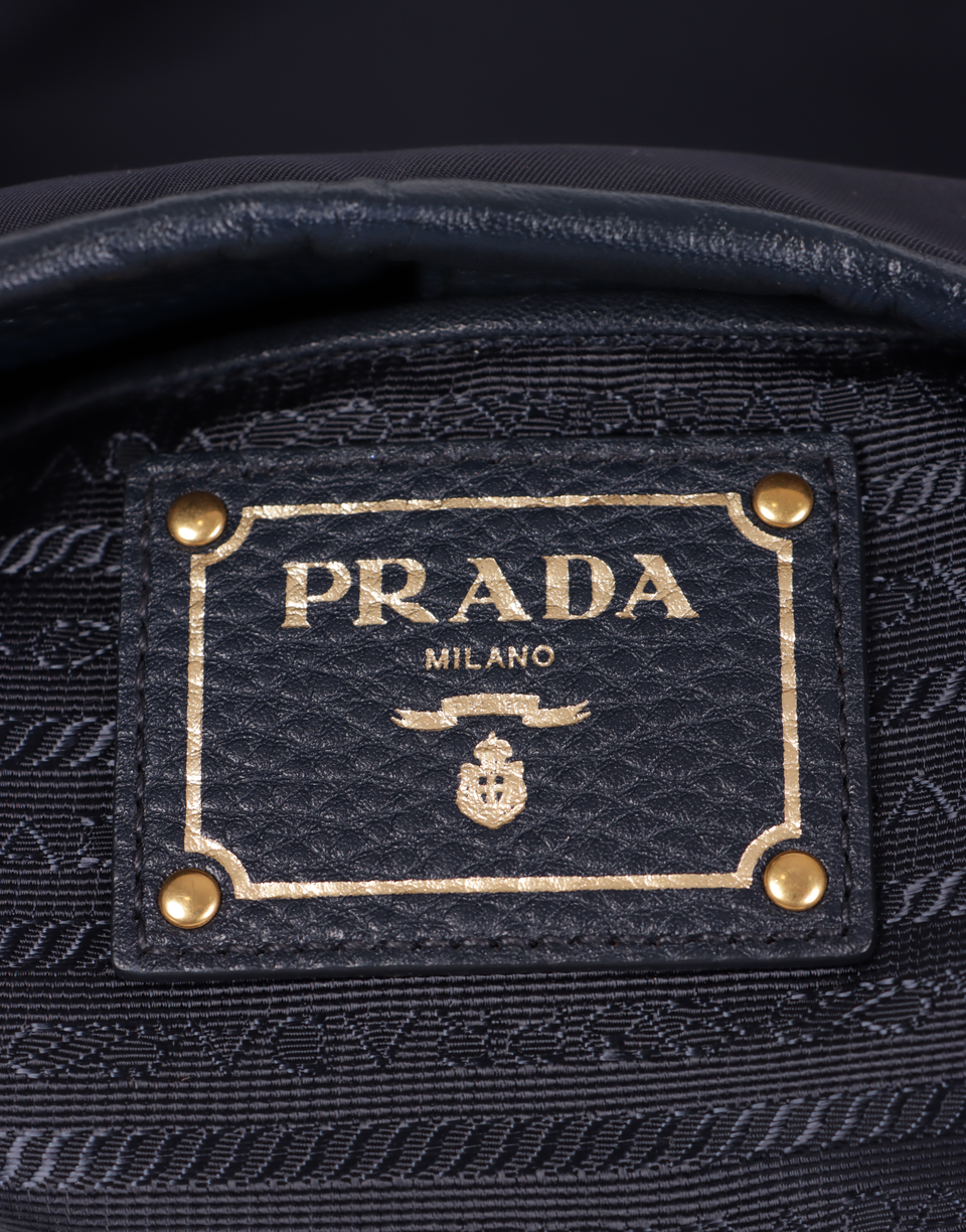 Descrição do Material: Nylon azul com detalhes em couro calfskin azul