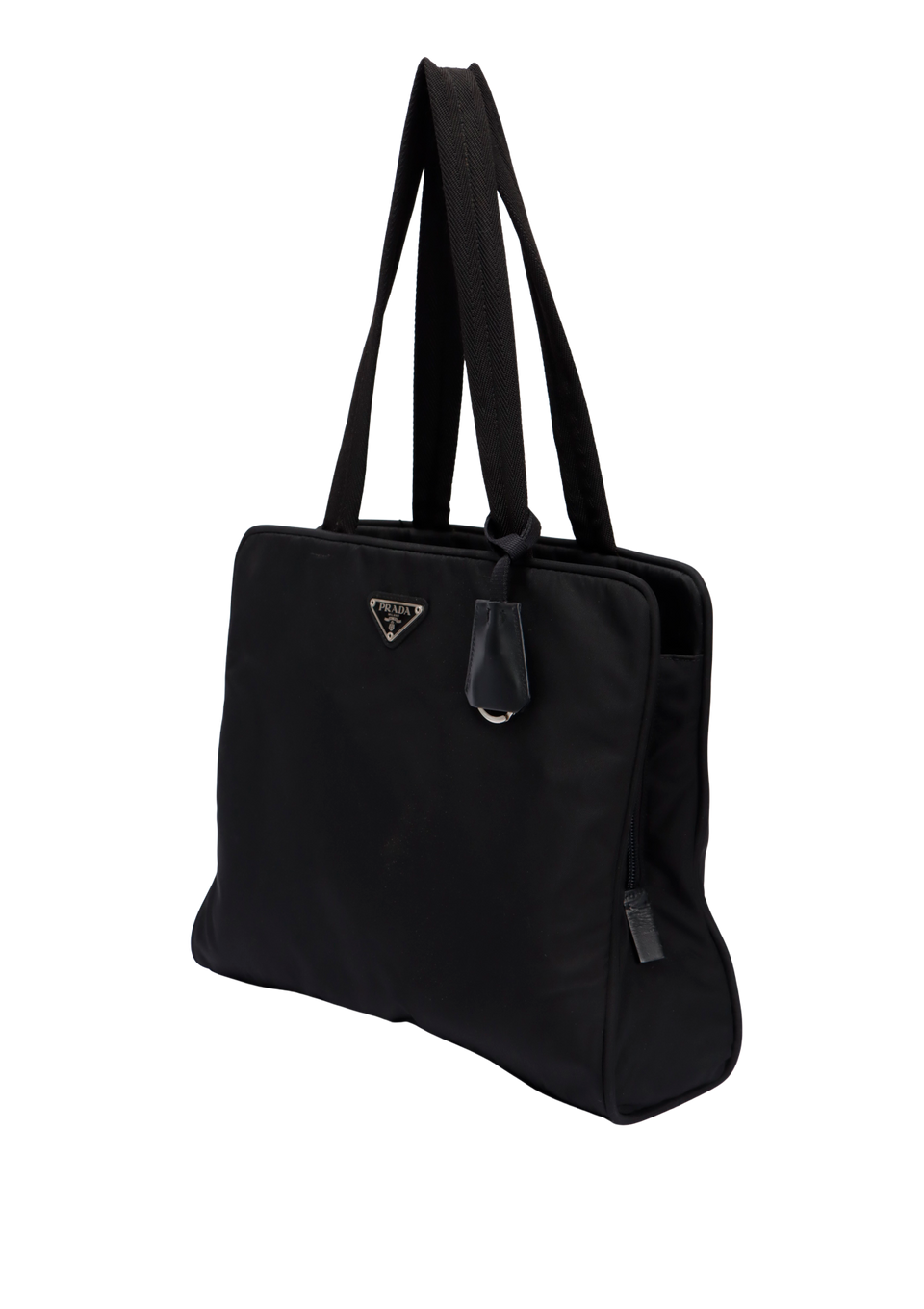 Descrição do Material: Nylon preto com detalhes em couro calfskin preto