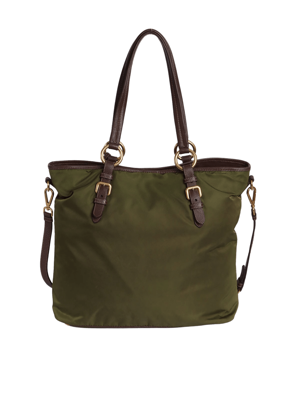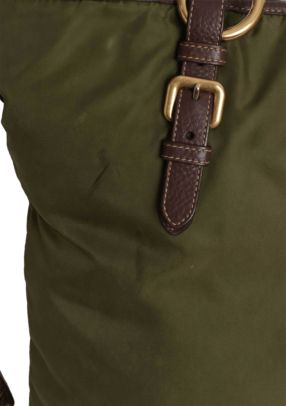 - Nylon verde e couro calfskin marrom;