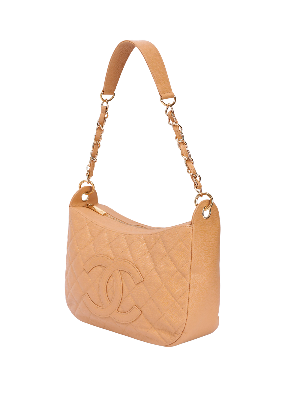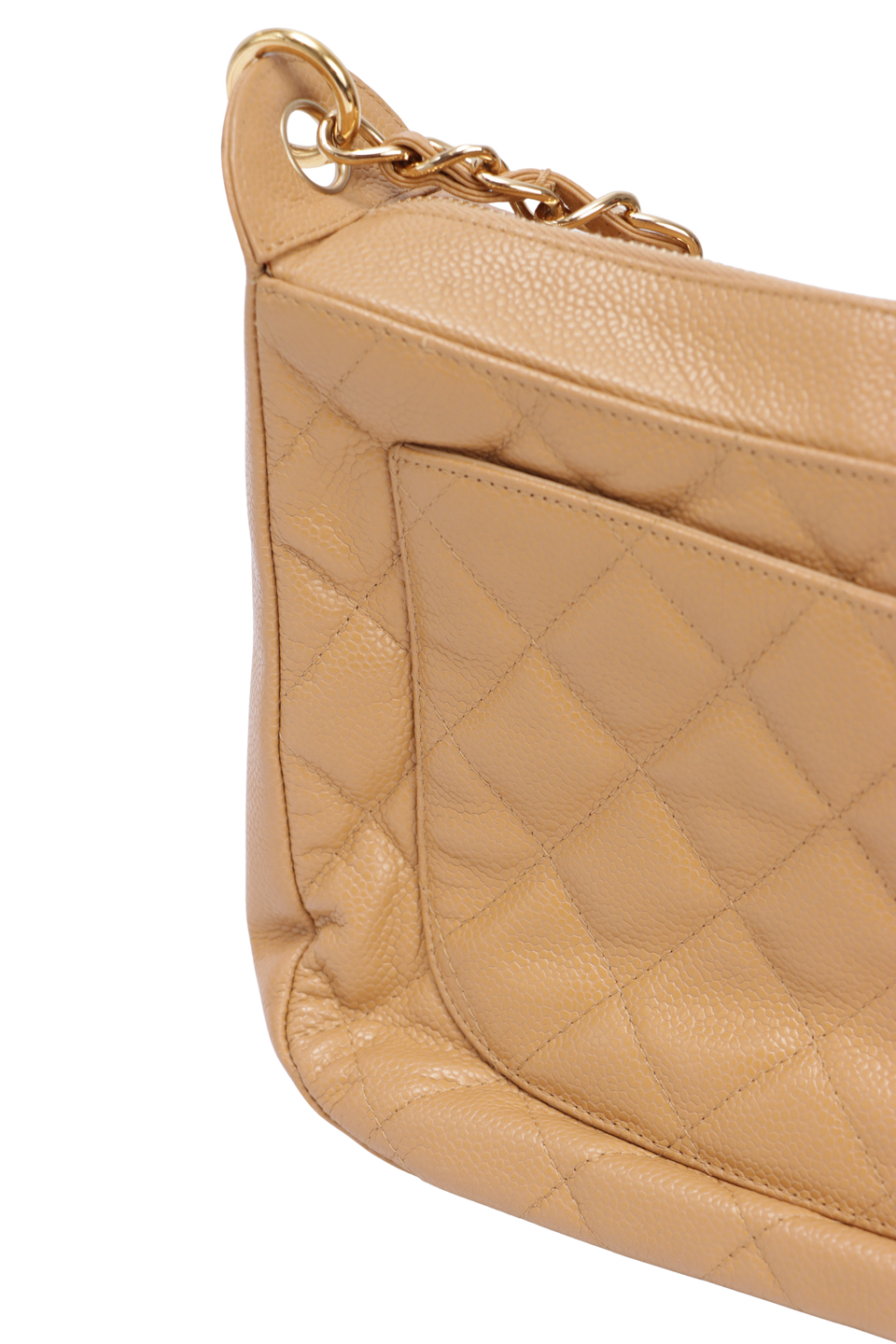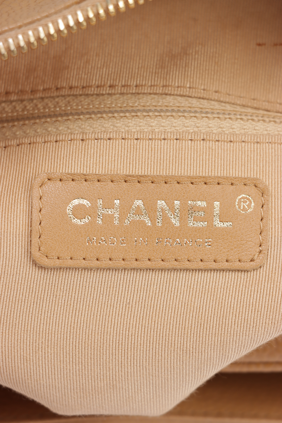 Descrição do Material: Couro calfskin bege com detalhes em matelassê e caviar