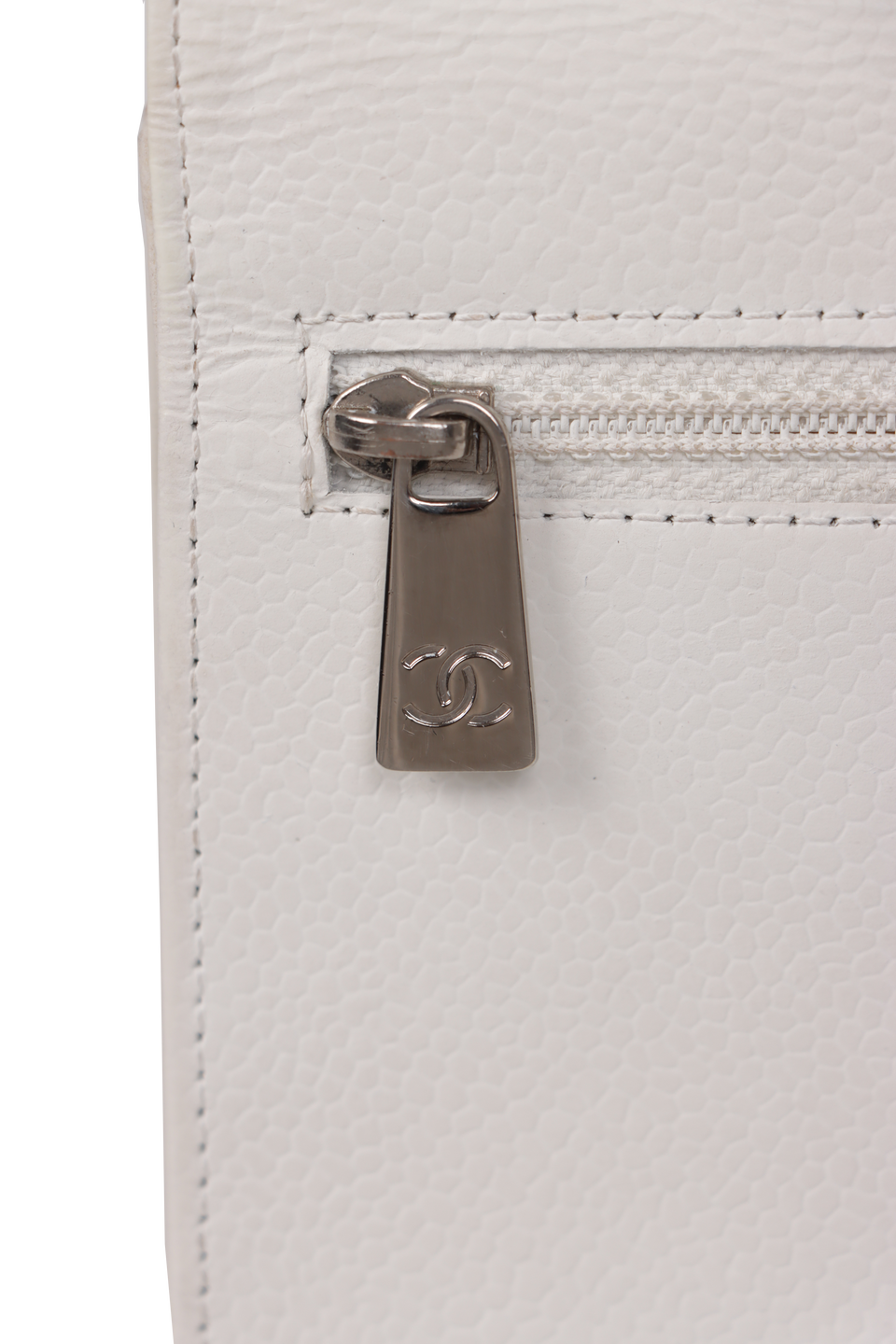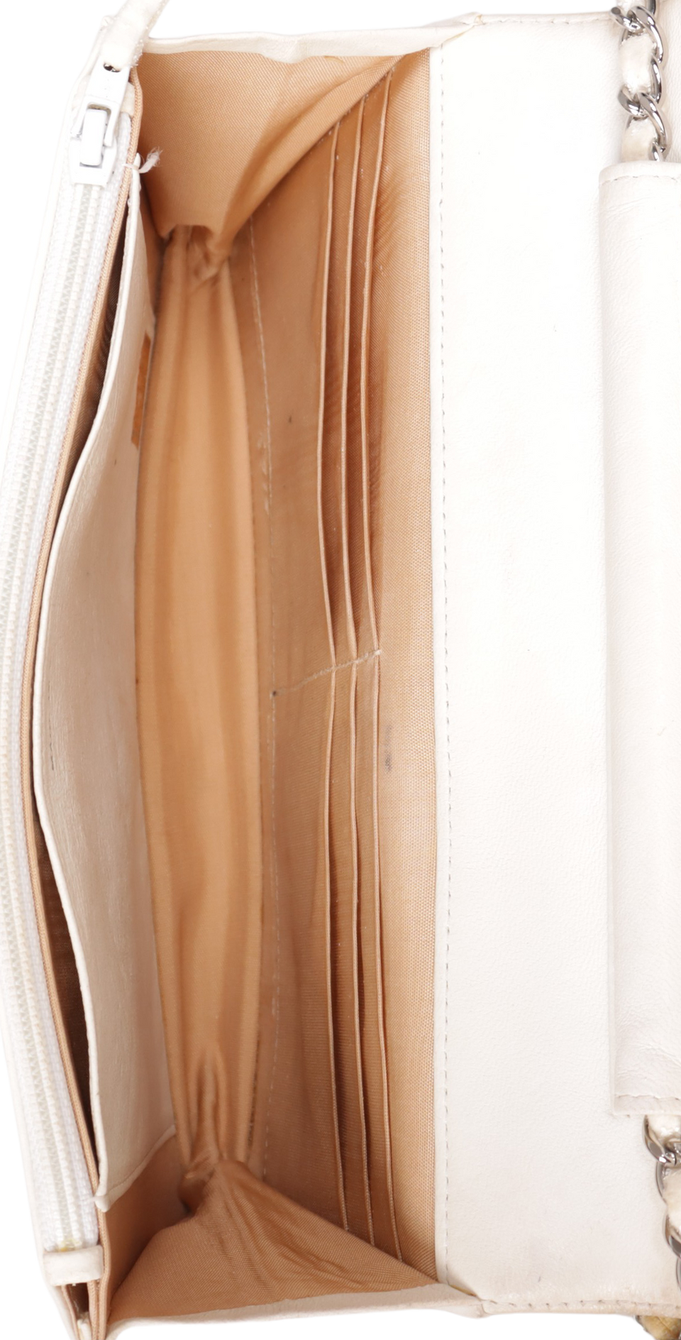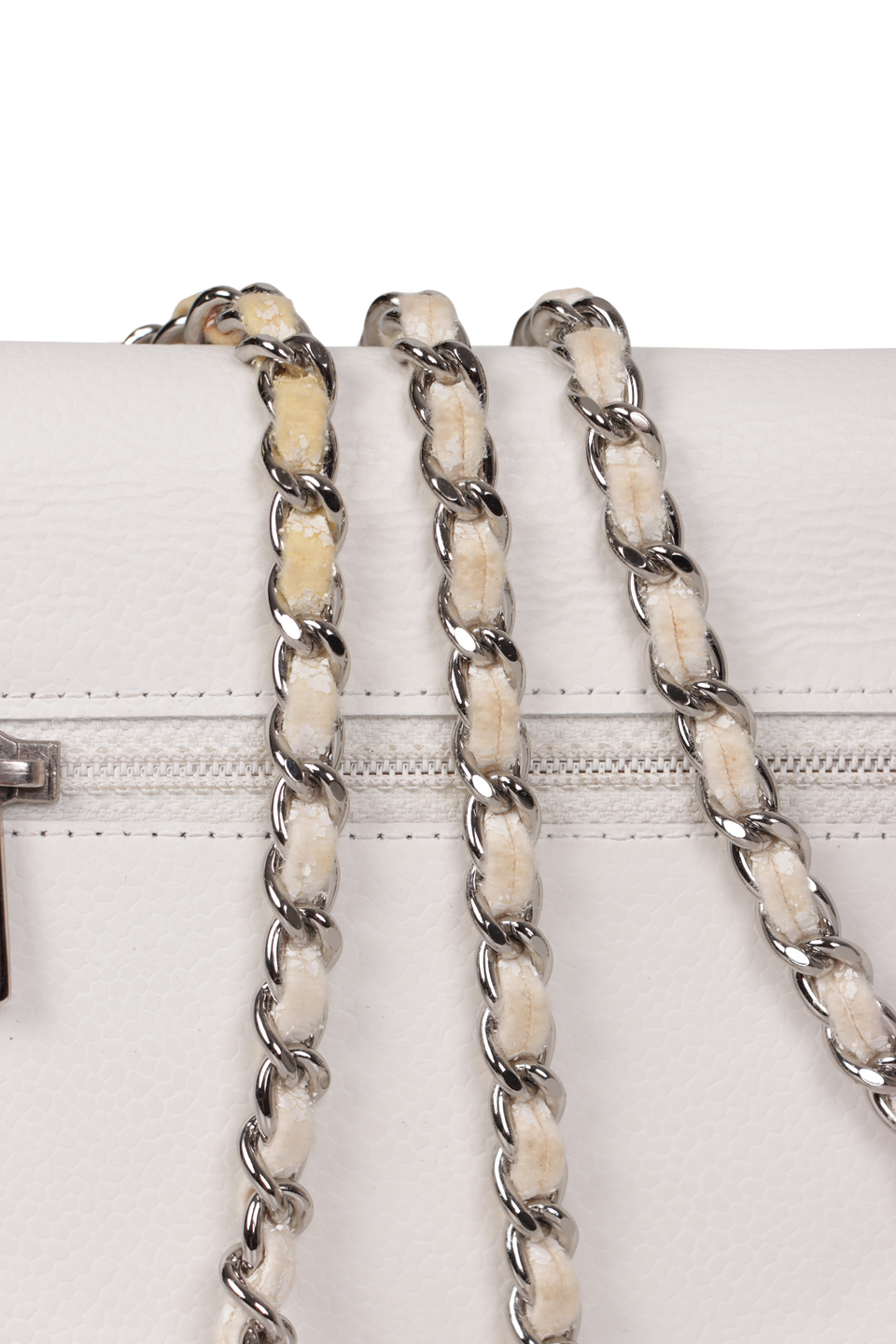 Descrição do Material: Couro calfskin branco com acabamento Caviar