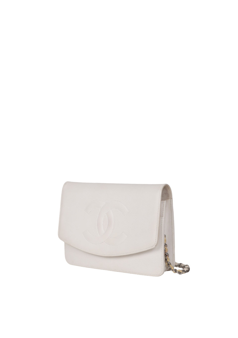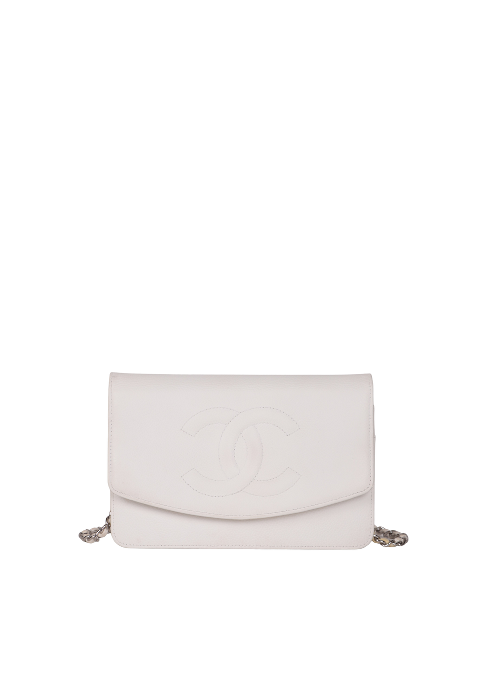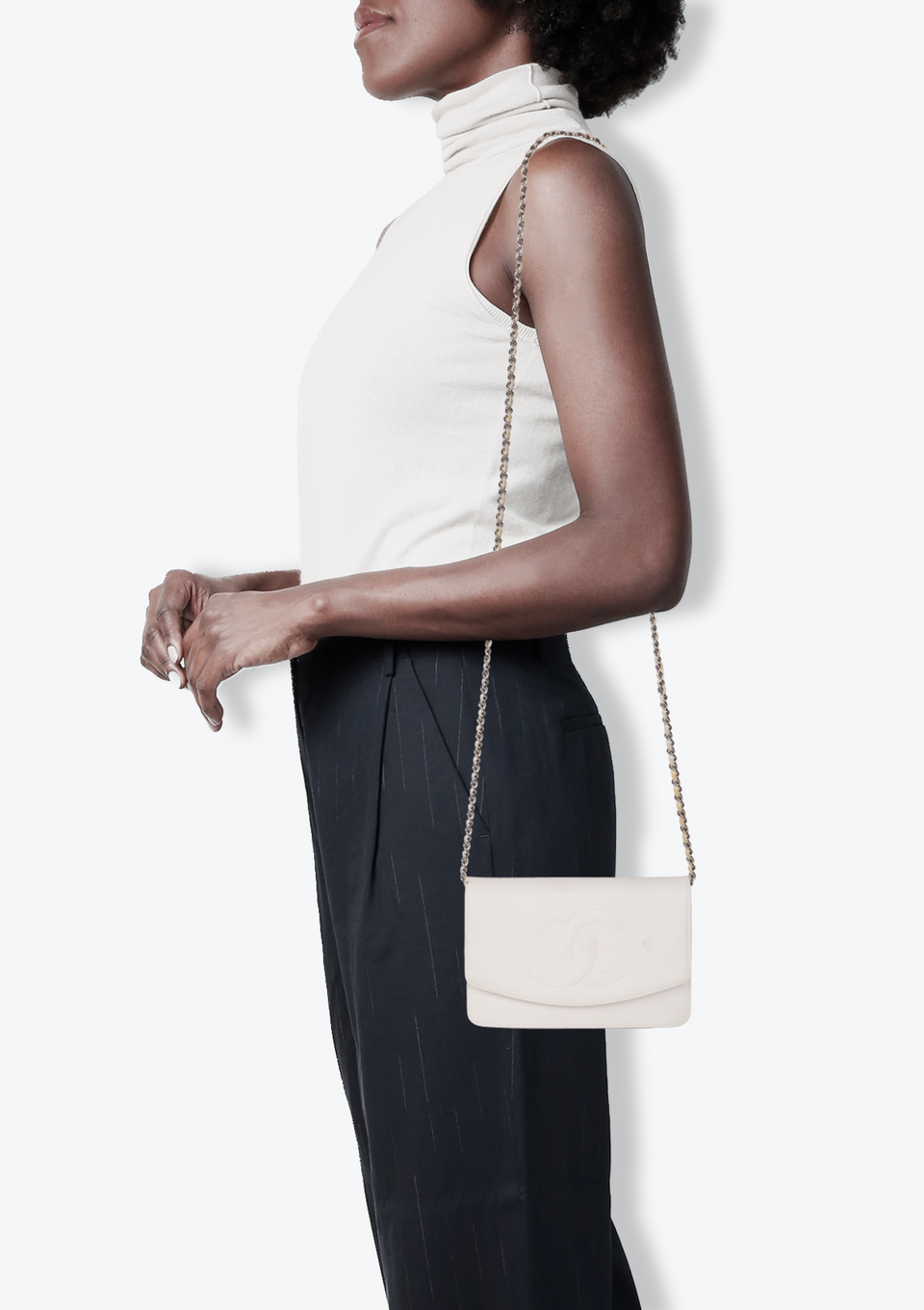 Descrição do Material: Couro calfskin branco com acabamento Caviar