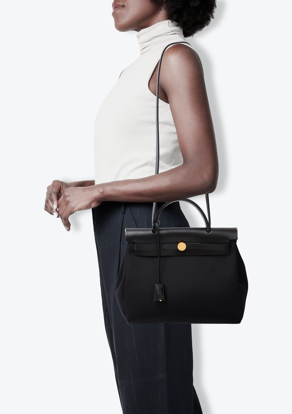 Descrição do Material: Canvas preto com detalhes em couro calfskin preto
