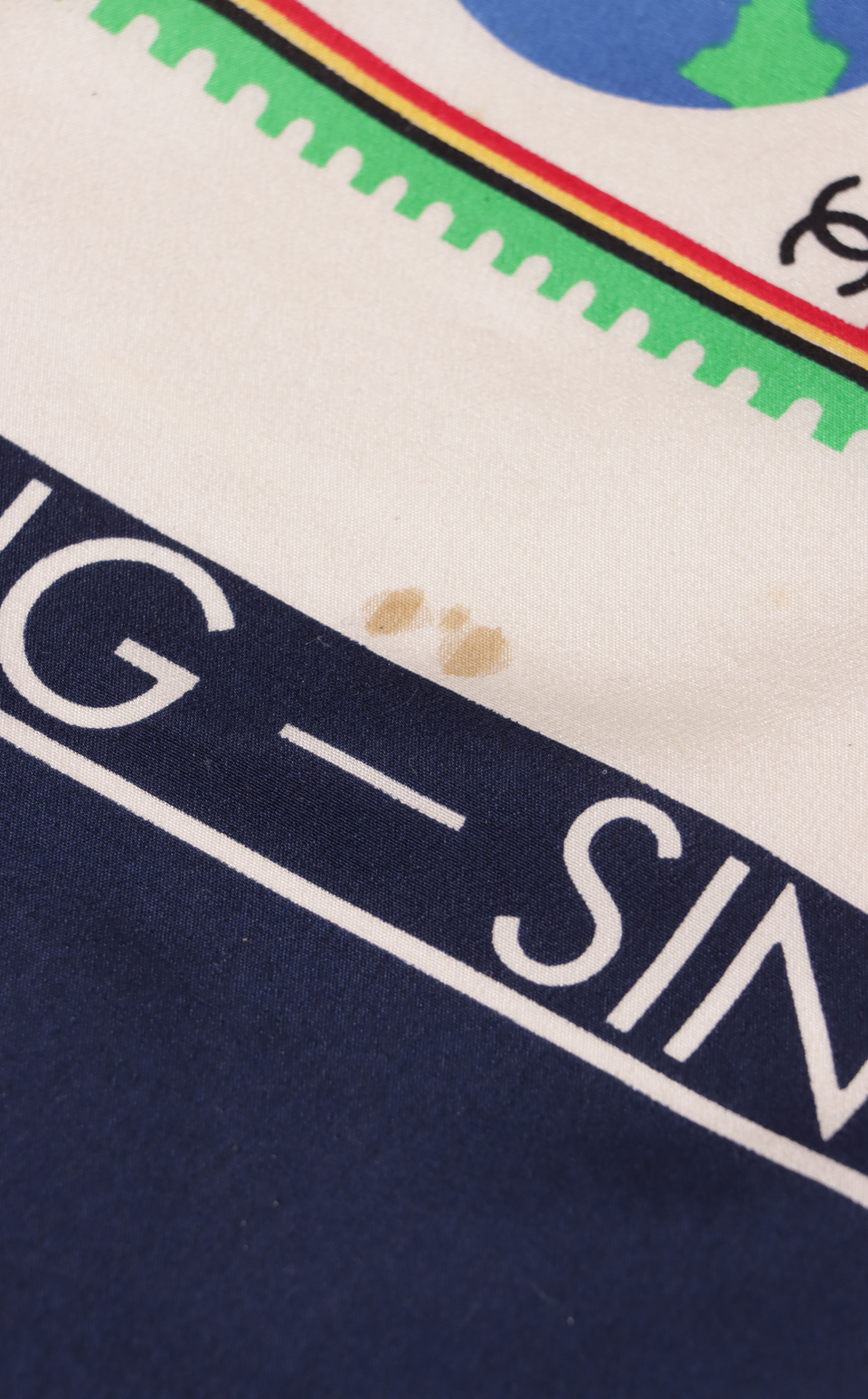 Bom, com aparência de usado. Apresenta leves manchas amareladas e de uso pelo tecido, especialmente do lado esquerdo frontal, na parte superior frontal e no canto inferior direito frontal e leve odor de item guardado.