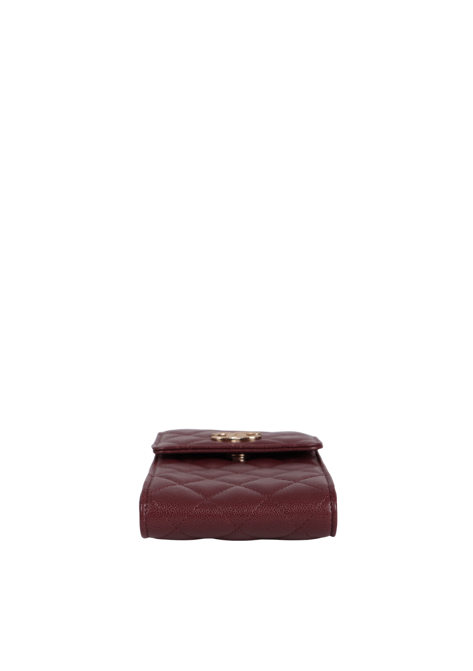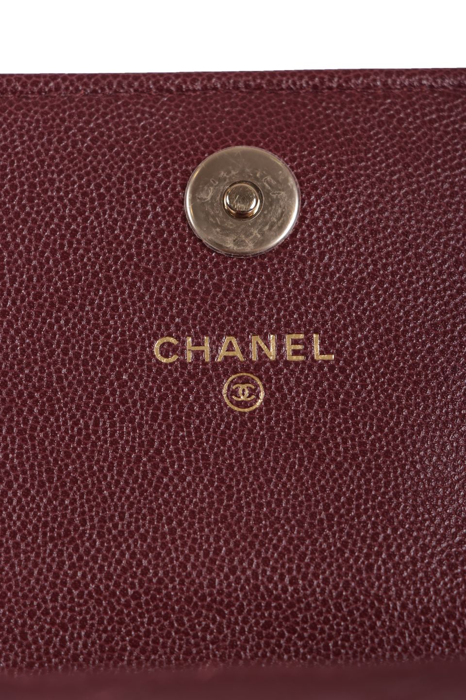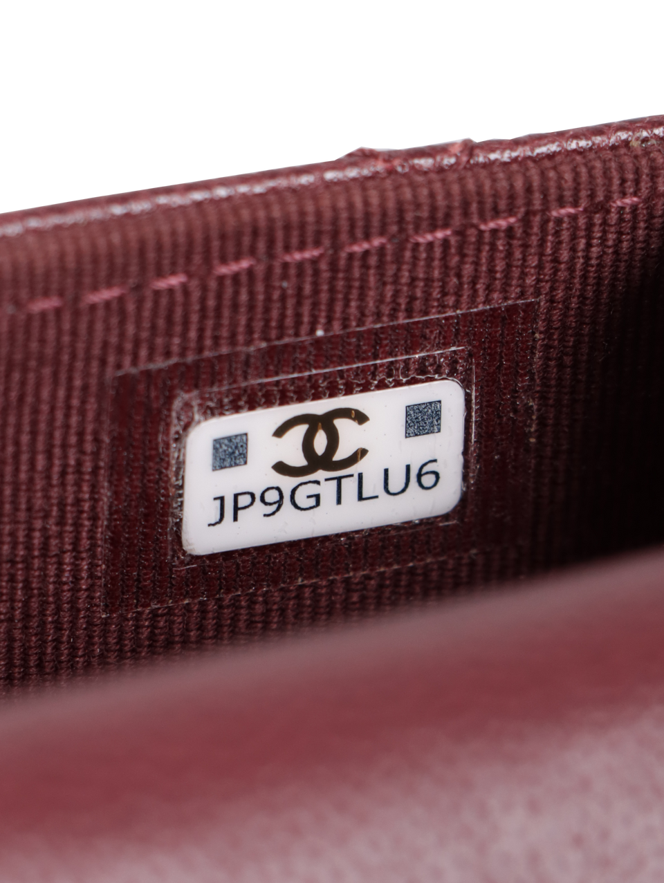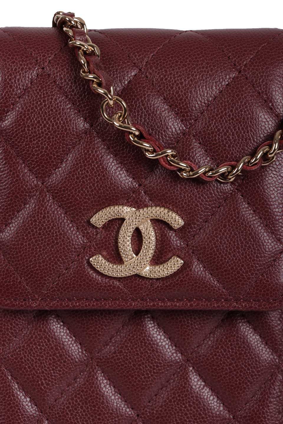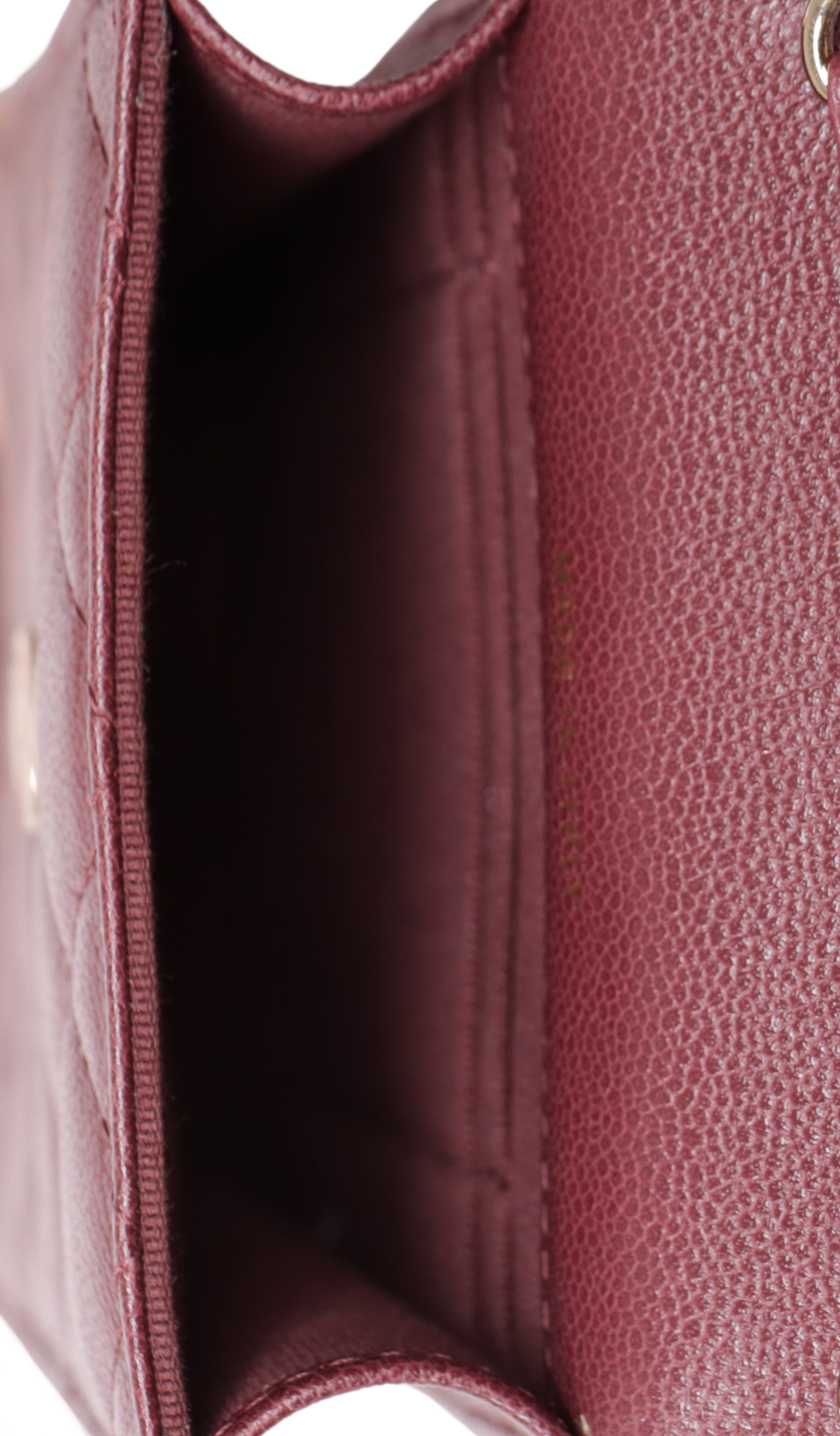 Descrição do Material: Couro calfskin bordô com acabamento Matelassê Caviar