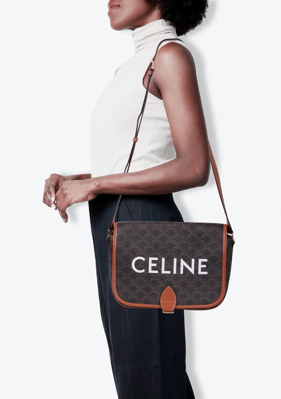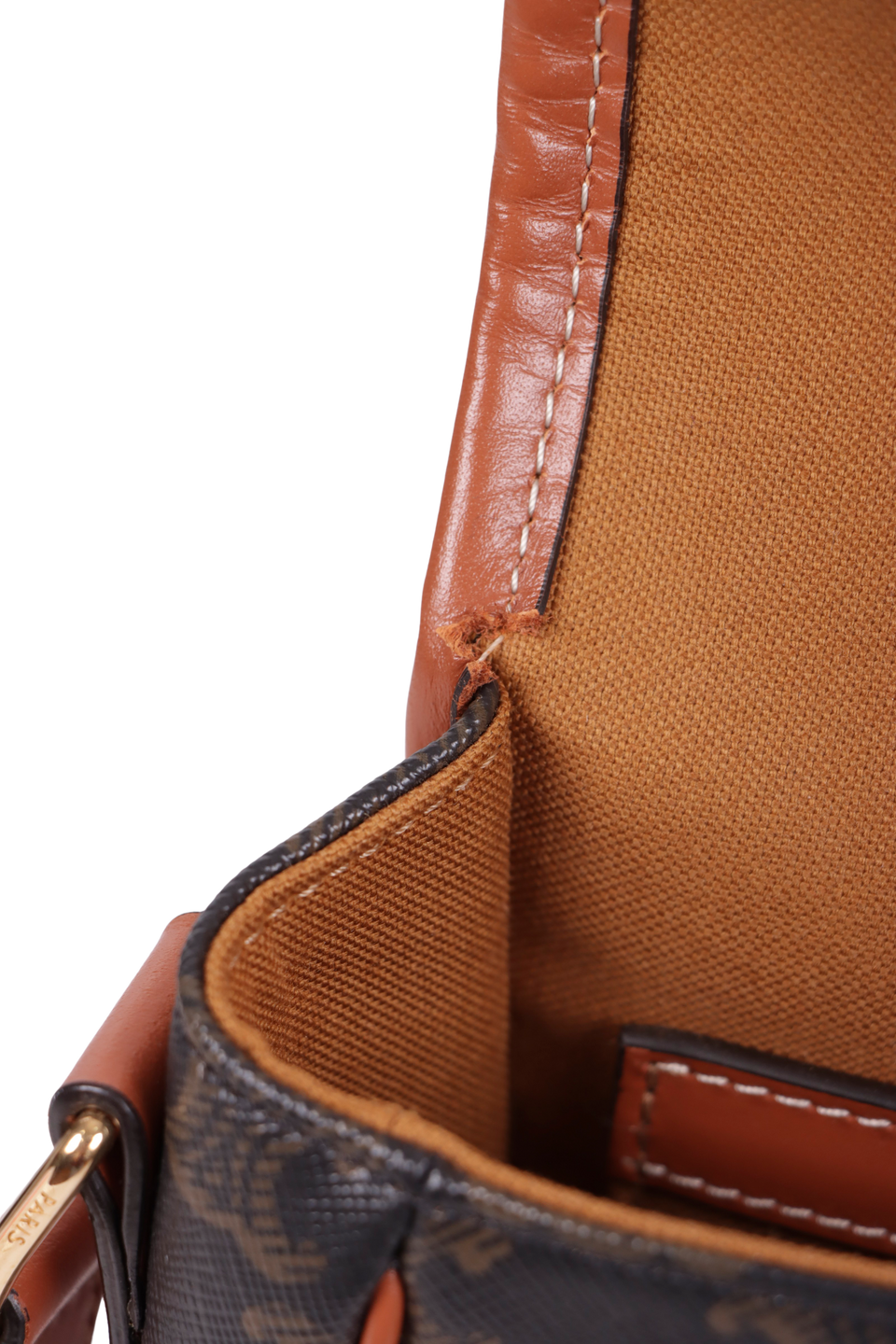 Descrição do Material: Canvas Triomphe com detalhes em couro calfskin marrom