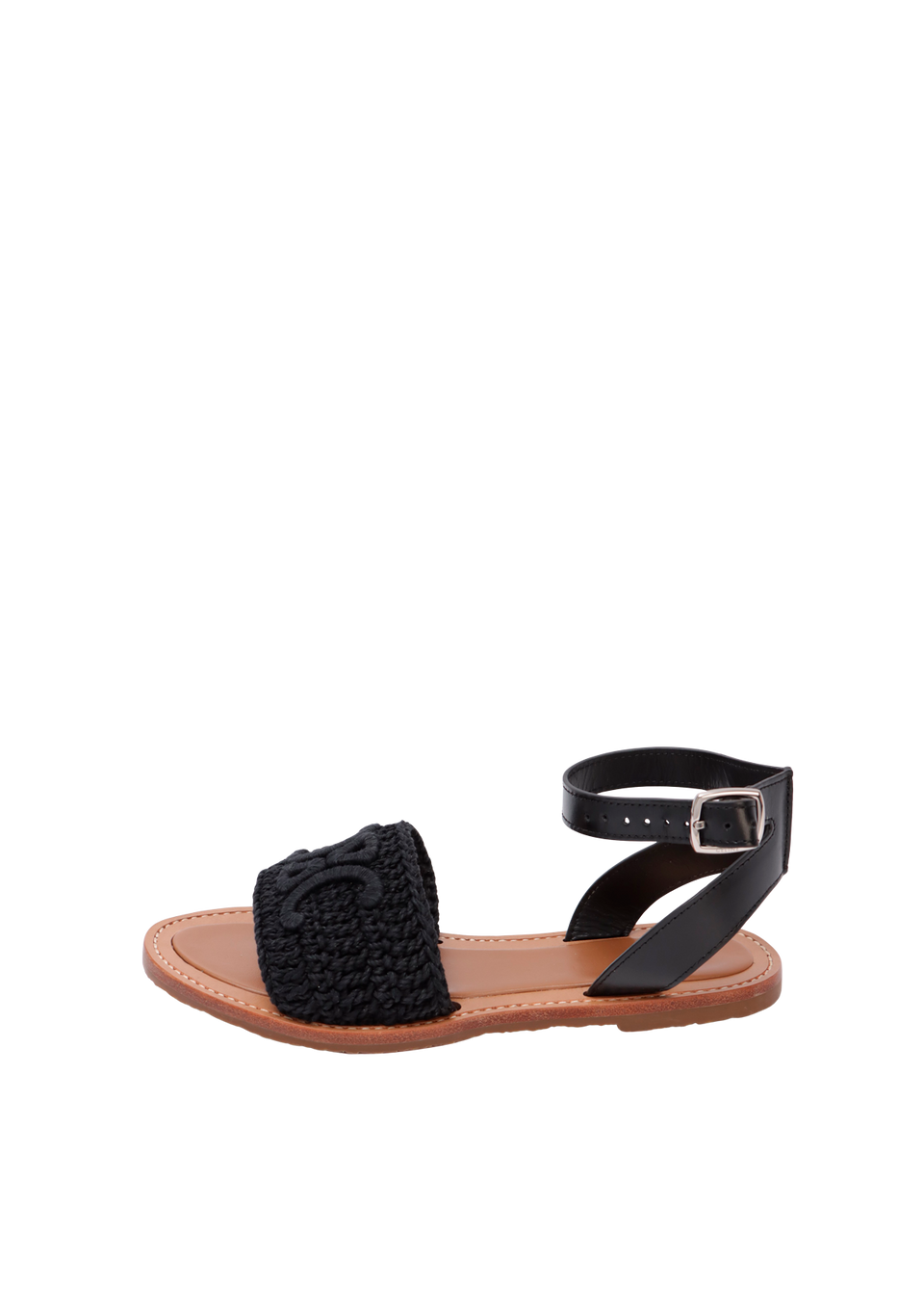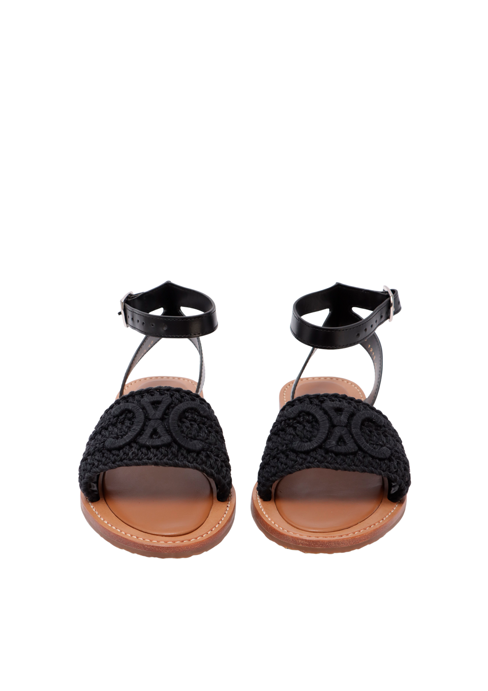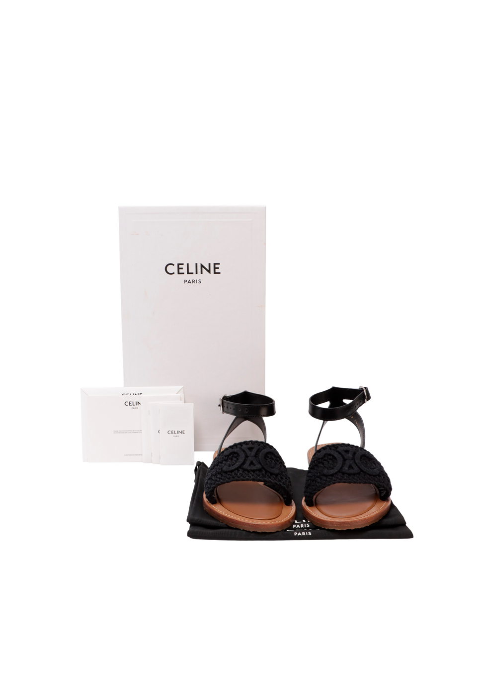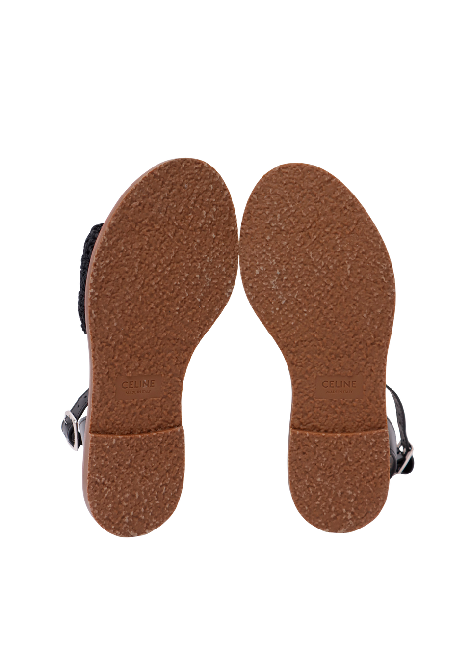 Descrição do Material: Couro calfskin marrom e preto com detalhes de crochê preto e madeira marrom