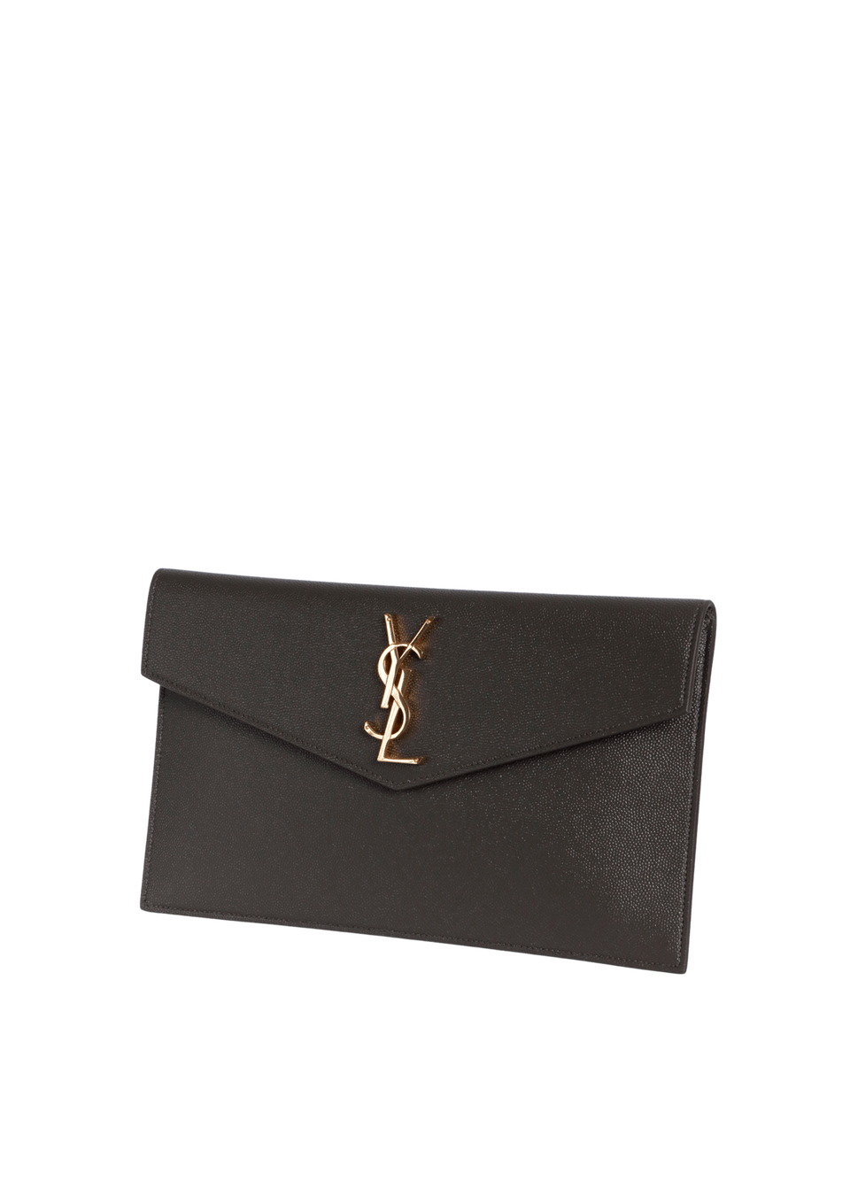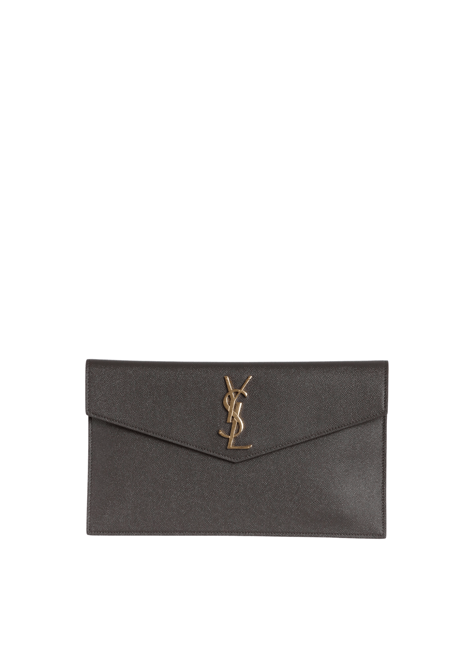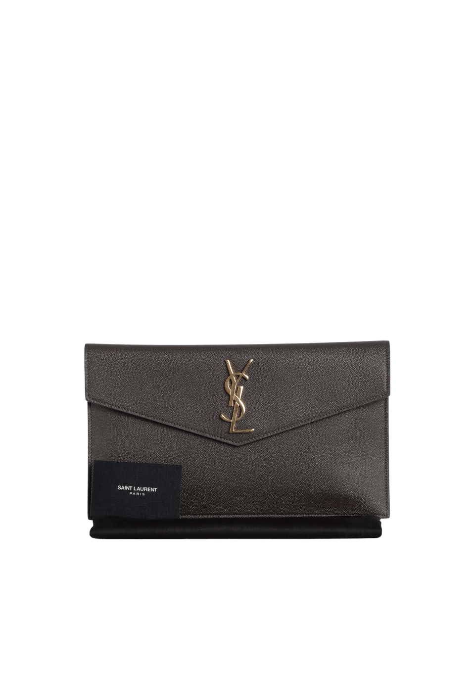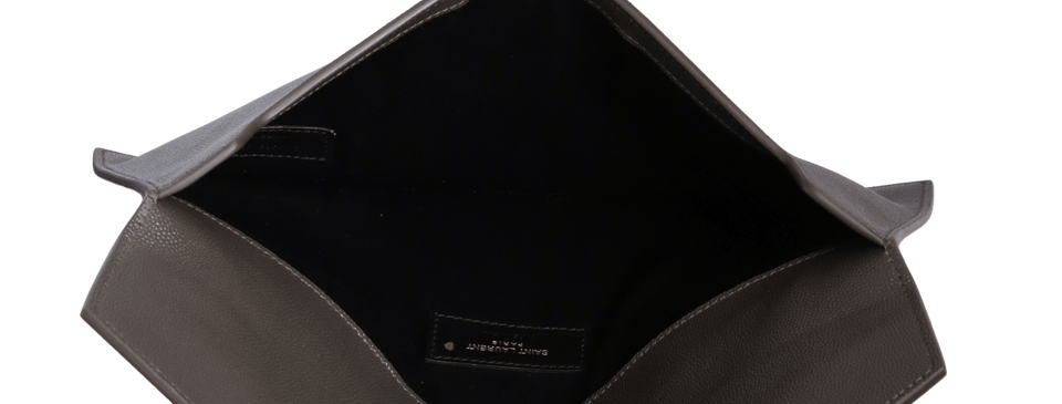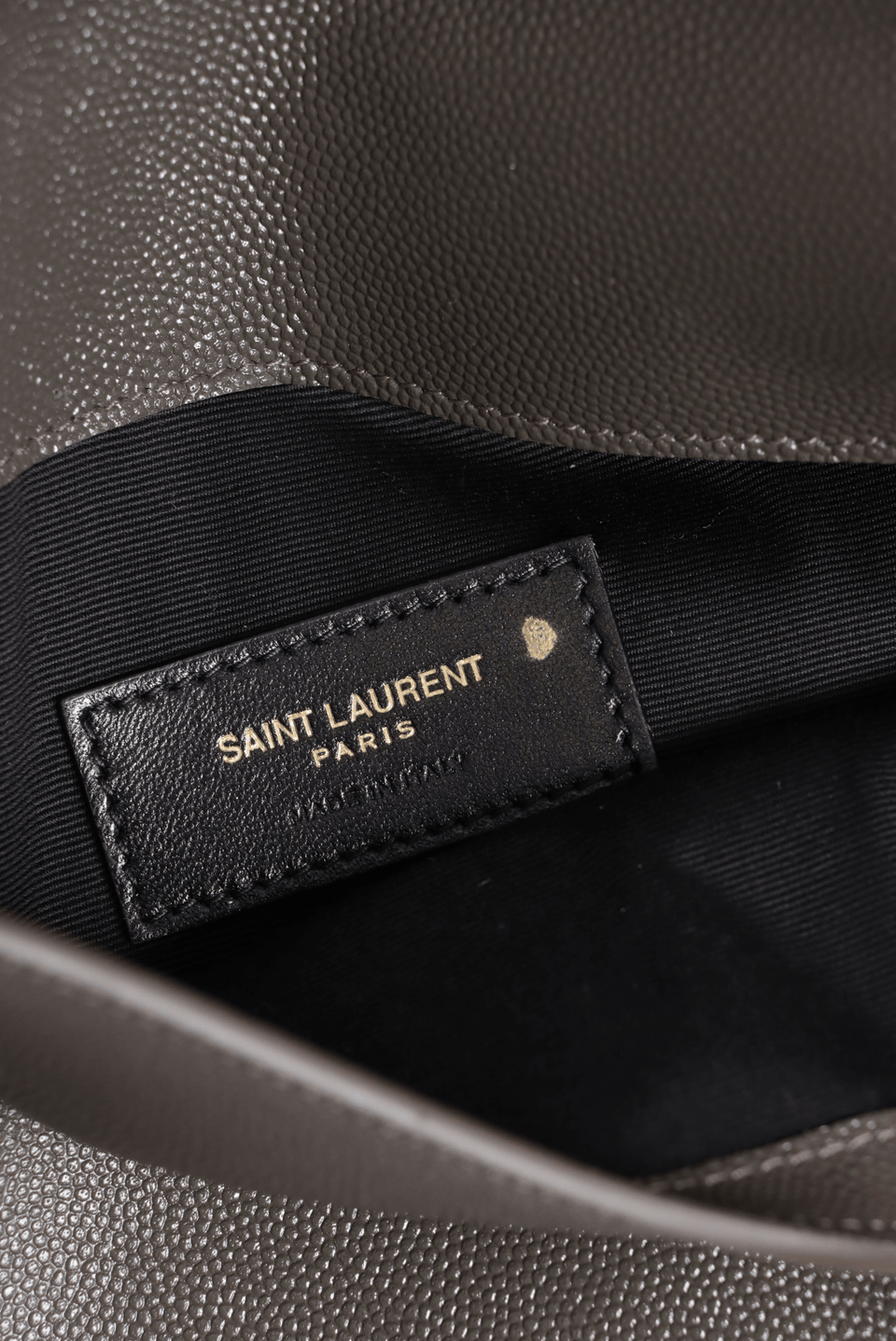 - Couro calfskin cinza com acabamento Grain de Poudre;