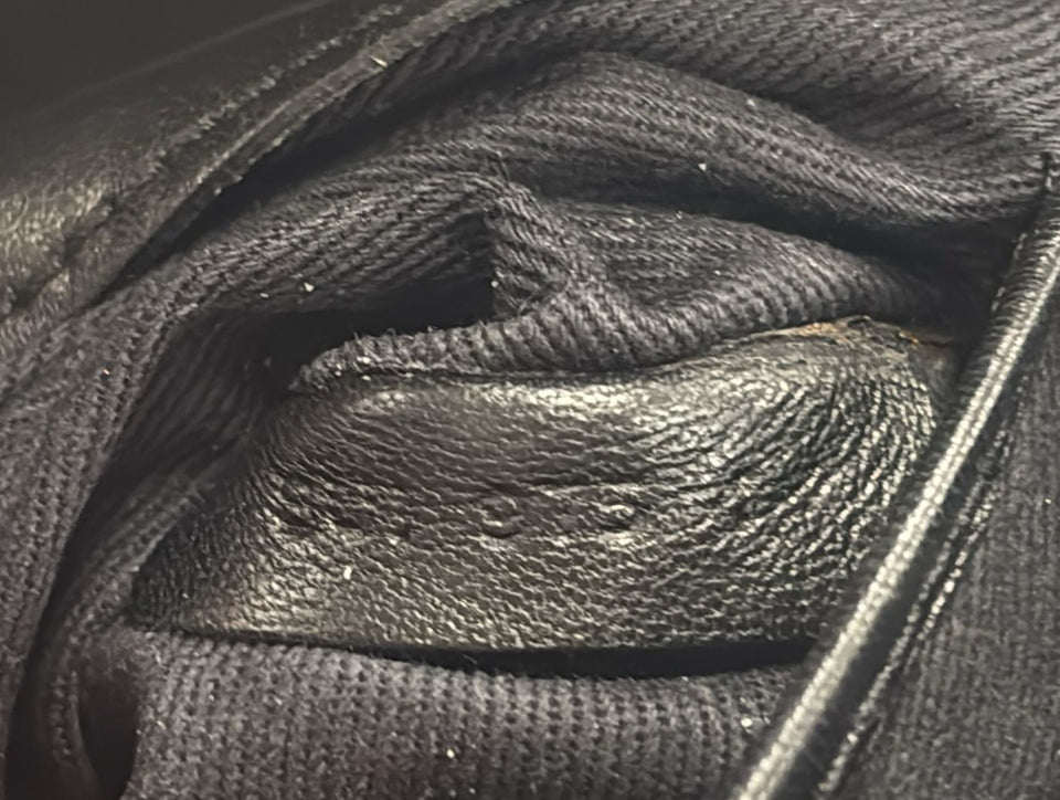 Bom, com aparência de usado. Apresenta leves desgastes e marcas de uso pelo couro, especialmente na parte superior central frontal, cantos da base, extremidades da aba e na parte superior de trás, pequenas marcas de uso nas ferragens da parte superior, no detalhe frontal, alça e nos botões magnéticos e leves manchas de uso pelo forro.