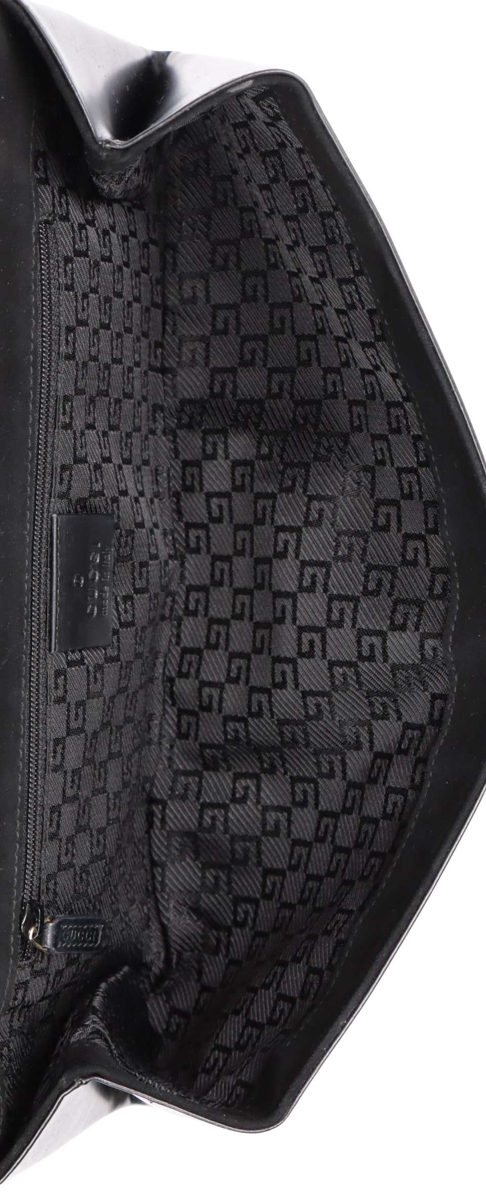 Bom, com aparência de usado. Apresenta leves marcas de uso, desgastes e manchas esbranquiçadas pelo couro, especialmente do lado direito da parte de trás, na parte superior central frontal e cantos da base, pequenas marcas de uso nas ferragens dos detalhes da alça e leves marca de uso pela camurça interna da aba.