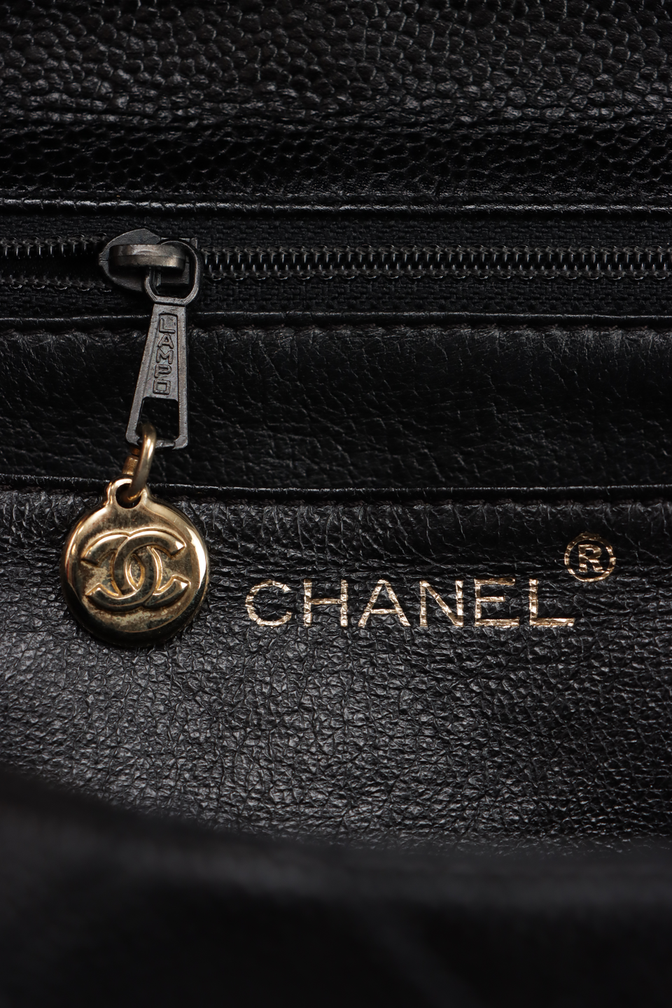 Descrição do Material: Couro calfskin preto com acabamento matelassê e caviar