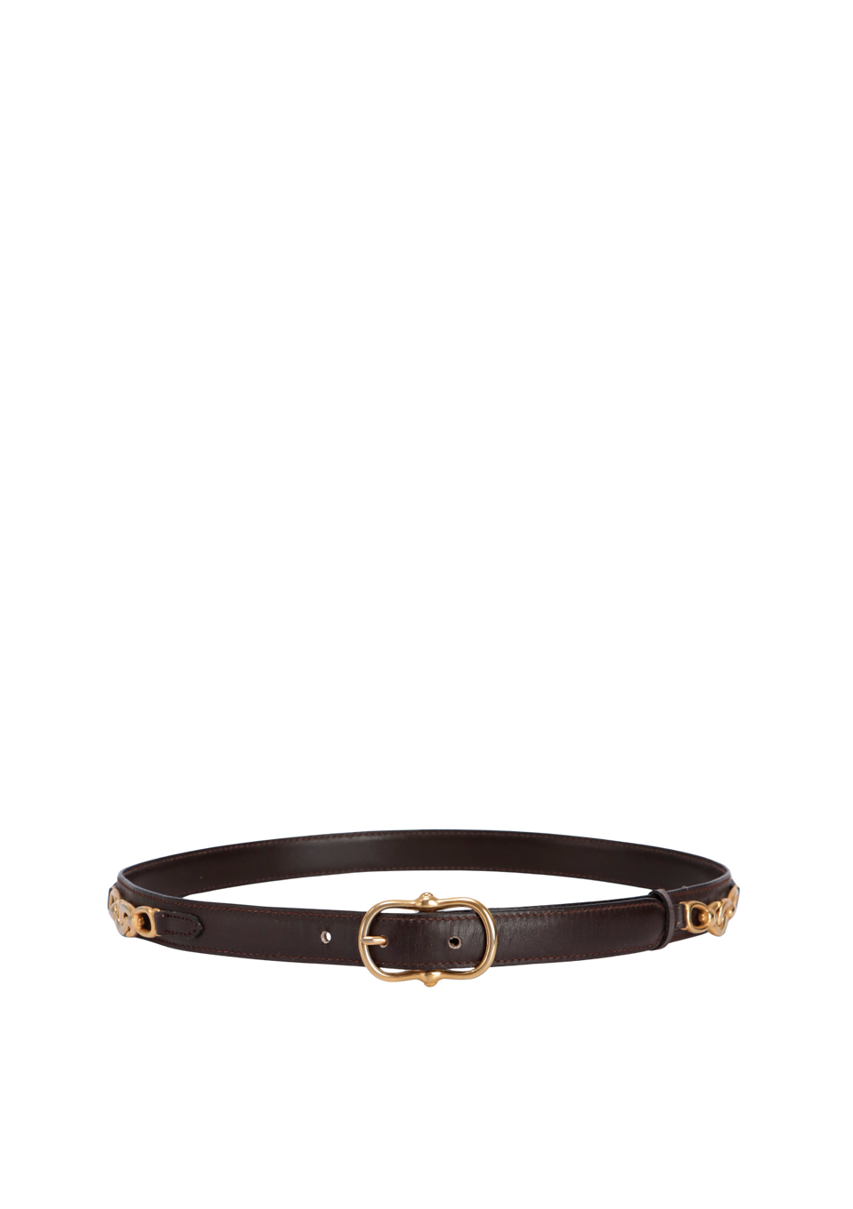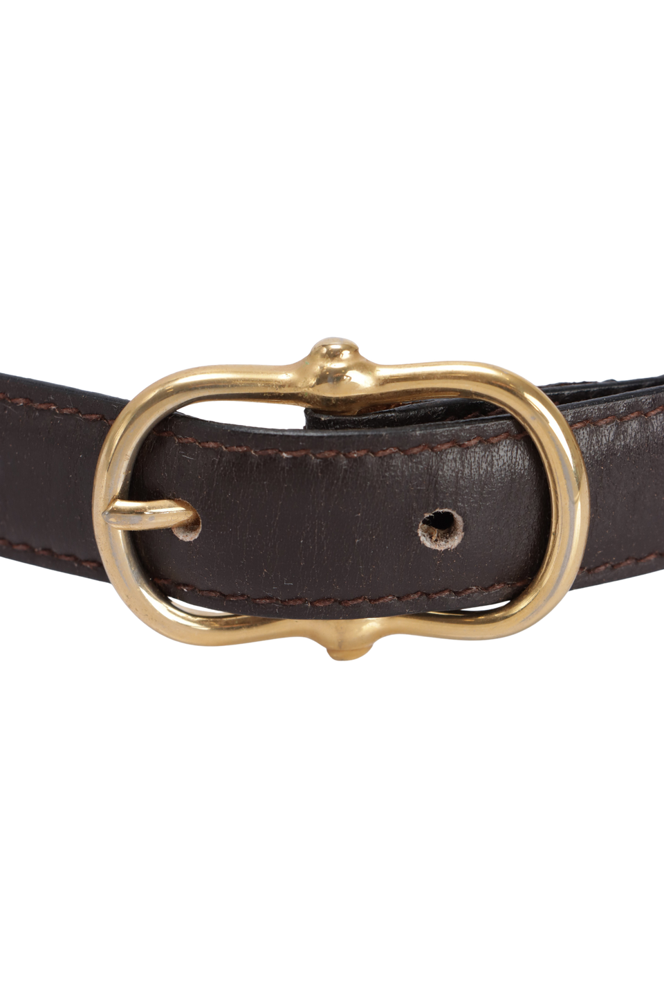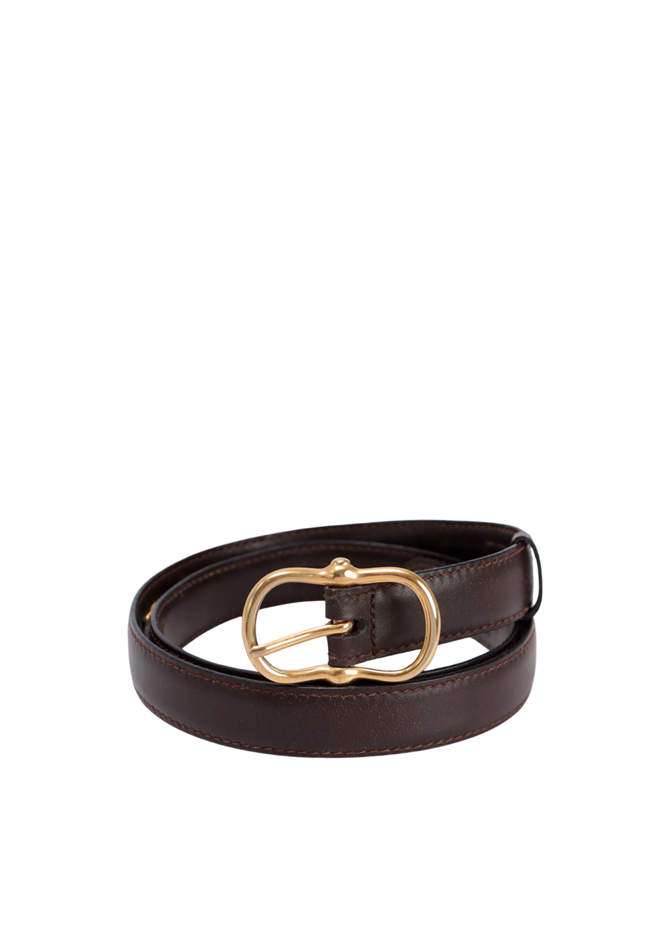 Bom, com aparência de usado. Apresenta leves desgastes e marcas de uso pelo comprimento, especialmente na parte central da frente, leves marcas de uso, descolorações e opacidade nas ferragens e couro levemente debotado devido ao ressecamento do mesmo.