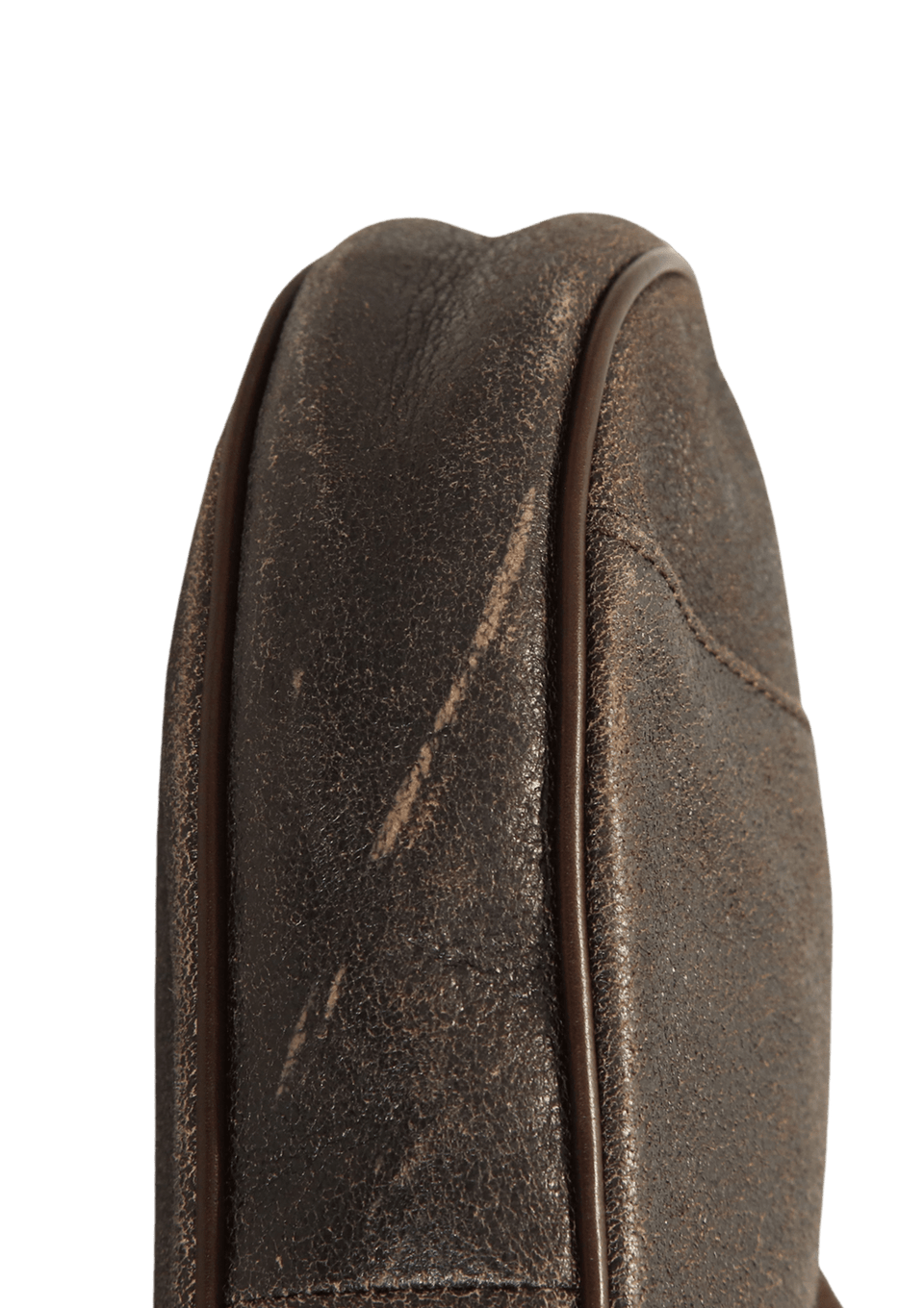 Condição: Bom, com aparência de usado. Apresenta pequenos desgastes na base e topo, ferragens oxidadas e odor característico de item guardado. Variações na coloração do couro são característicos do modelo.